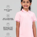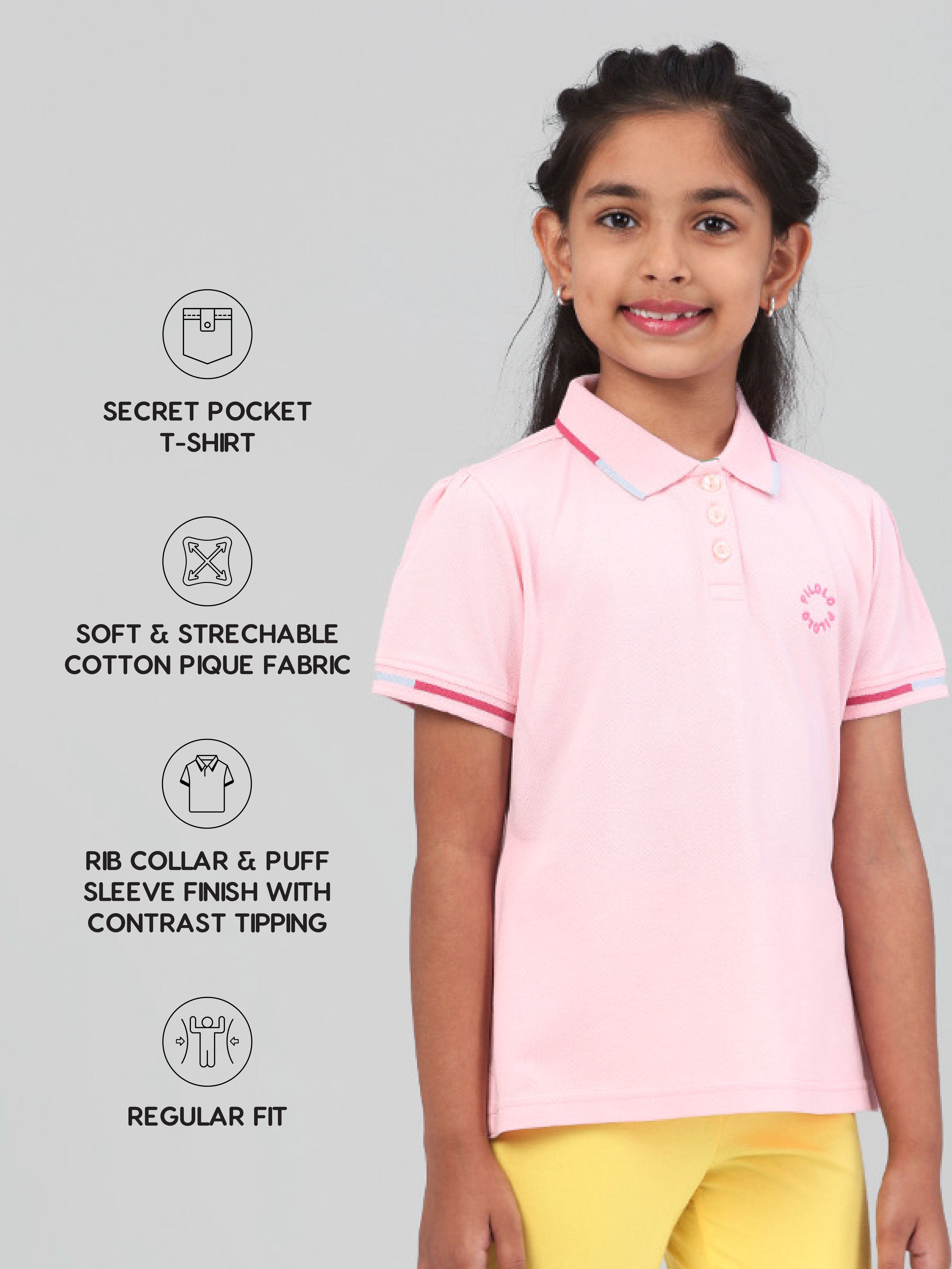 SKU: 050J - Pilolo Pink Puff Sleeve Collar Polo Cotton Pocket T-Shirt For Girls