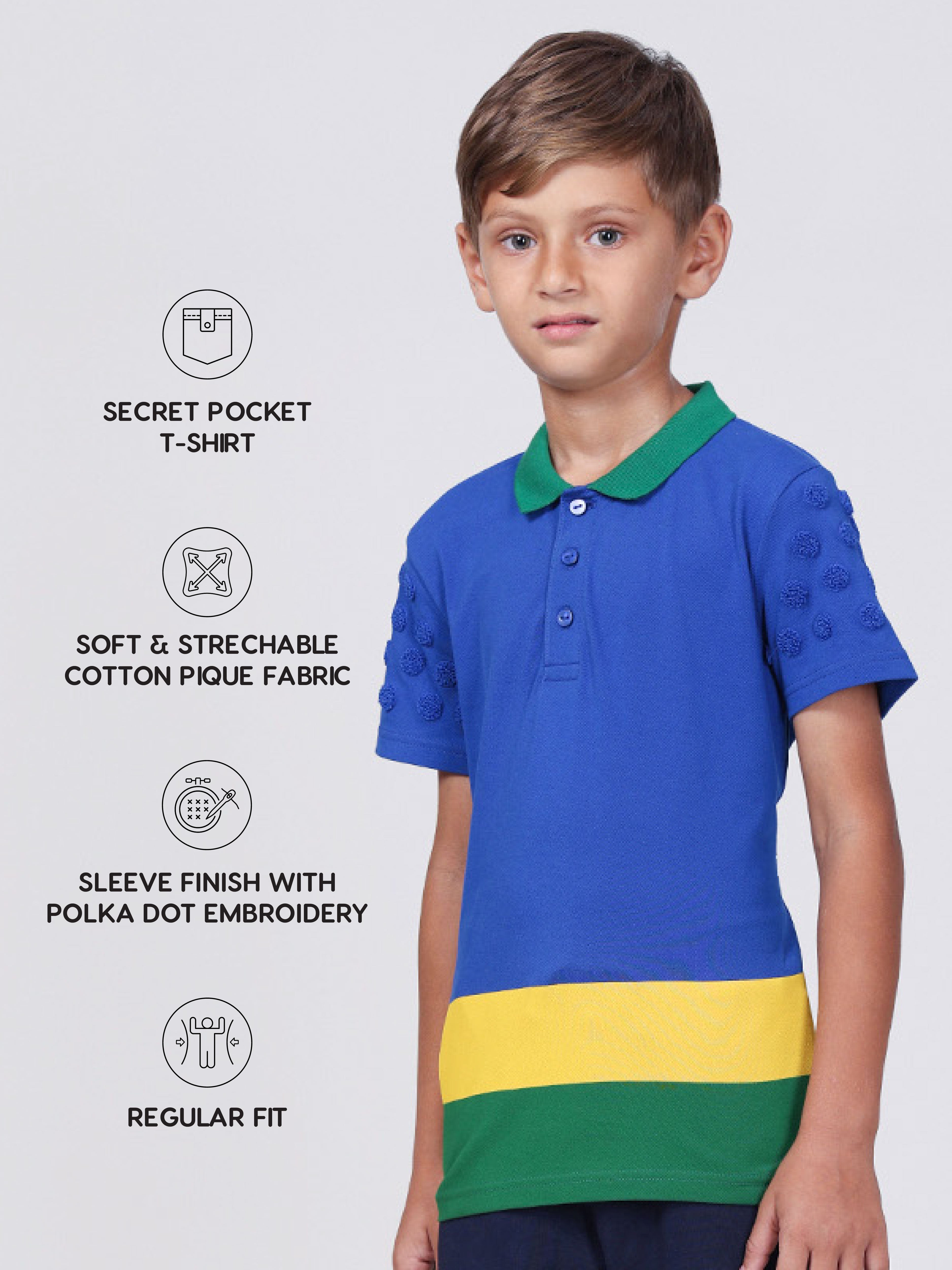 SKU: 033 - Pilolo Polo Pocket T-Shirt Colour Block Design Cotton Collar Pocket T-Shirt For Boys