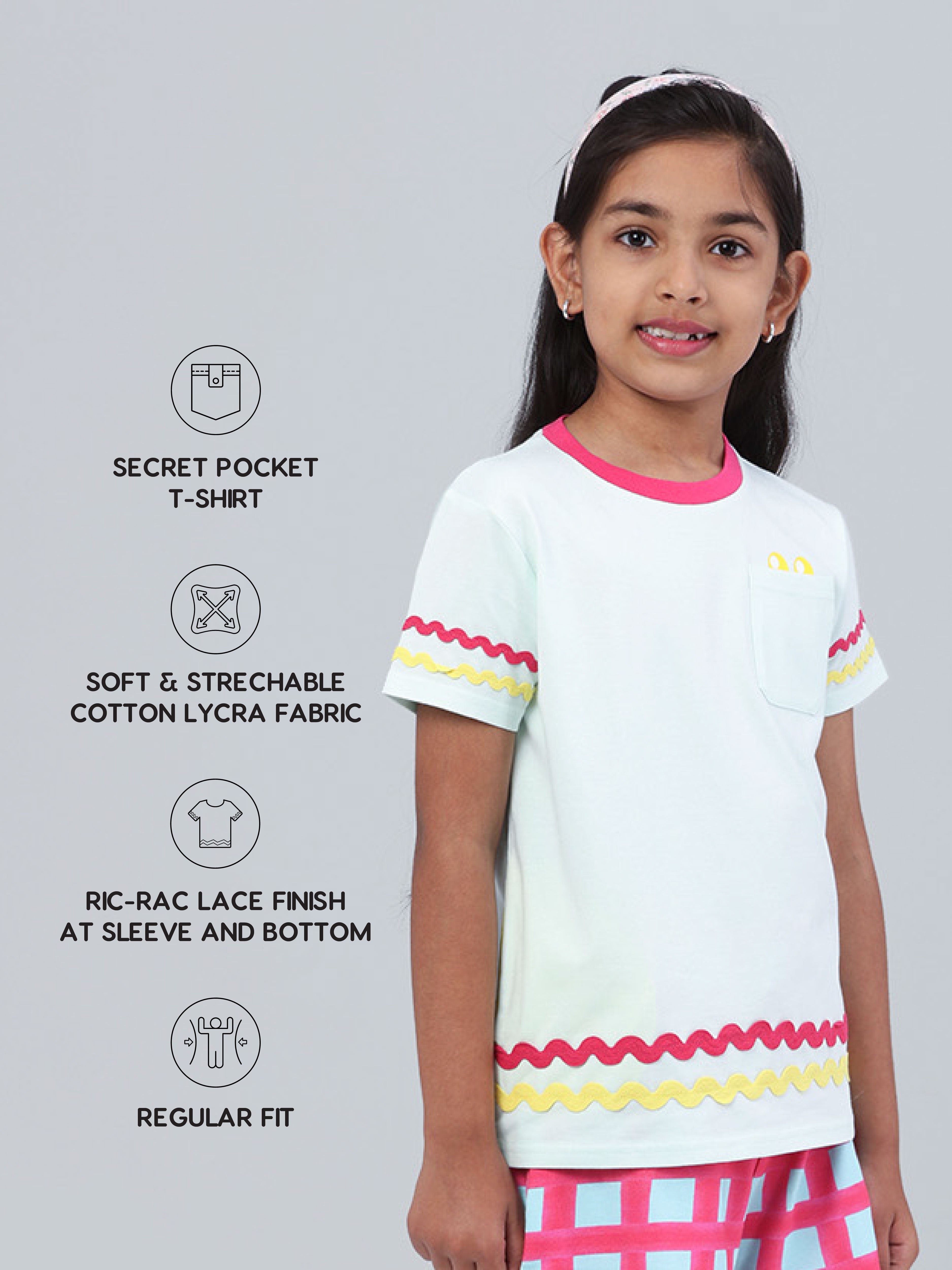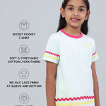 SKU: 036 - Pilolo Lolo Pocket Green Vibrant Colors And Ric-Rac Lace Comfortable Cotton Pocket T-Shirt For Girls