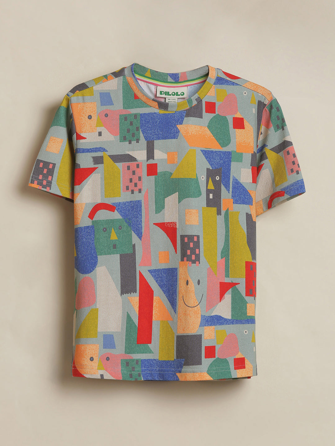 SKU: 089-Silly Faces Printed Tee-Unisex-Mulit Color-2-3 Yr