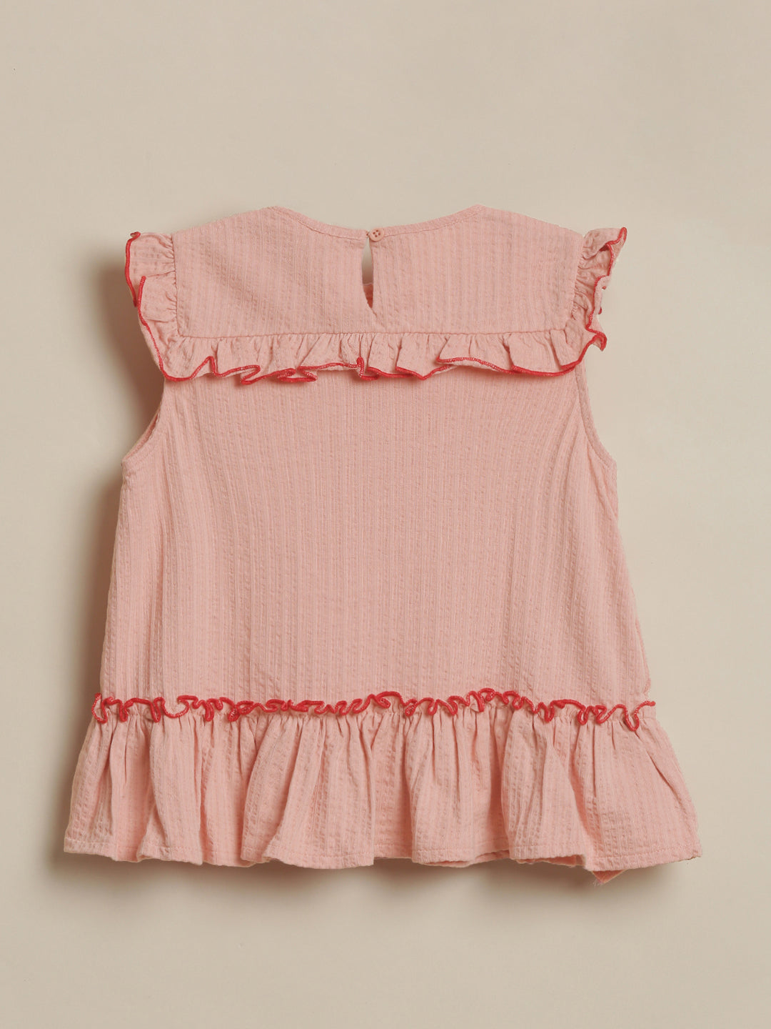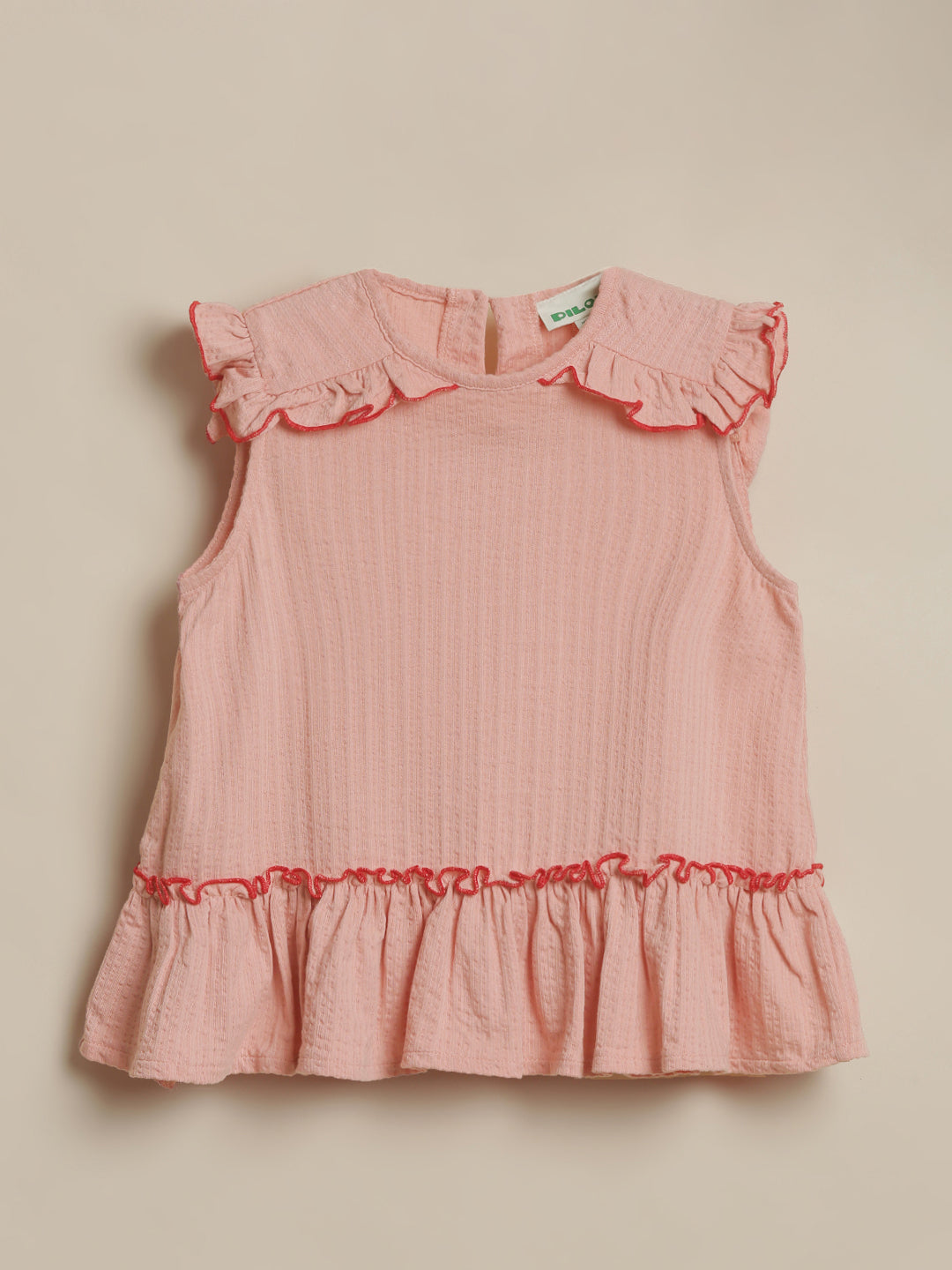 SKU: 093A -Soft Pink Ruffle Peplum Top-Girls-Mellow Rose-2-3 Yr