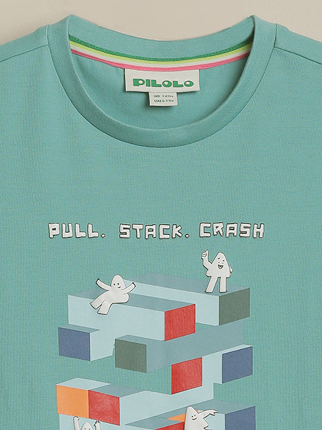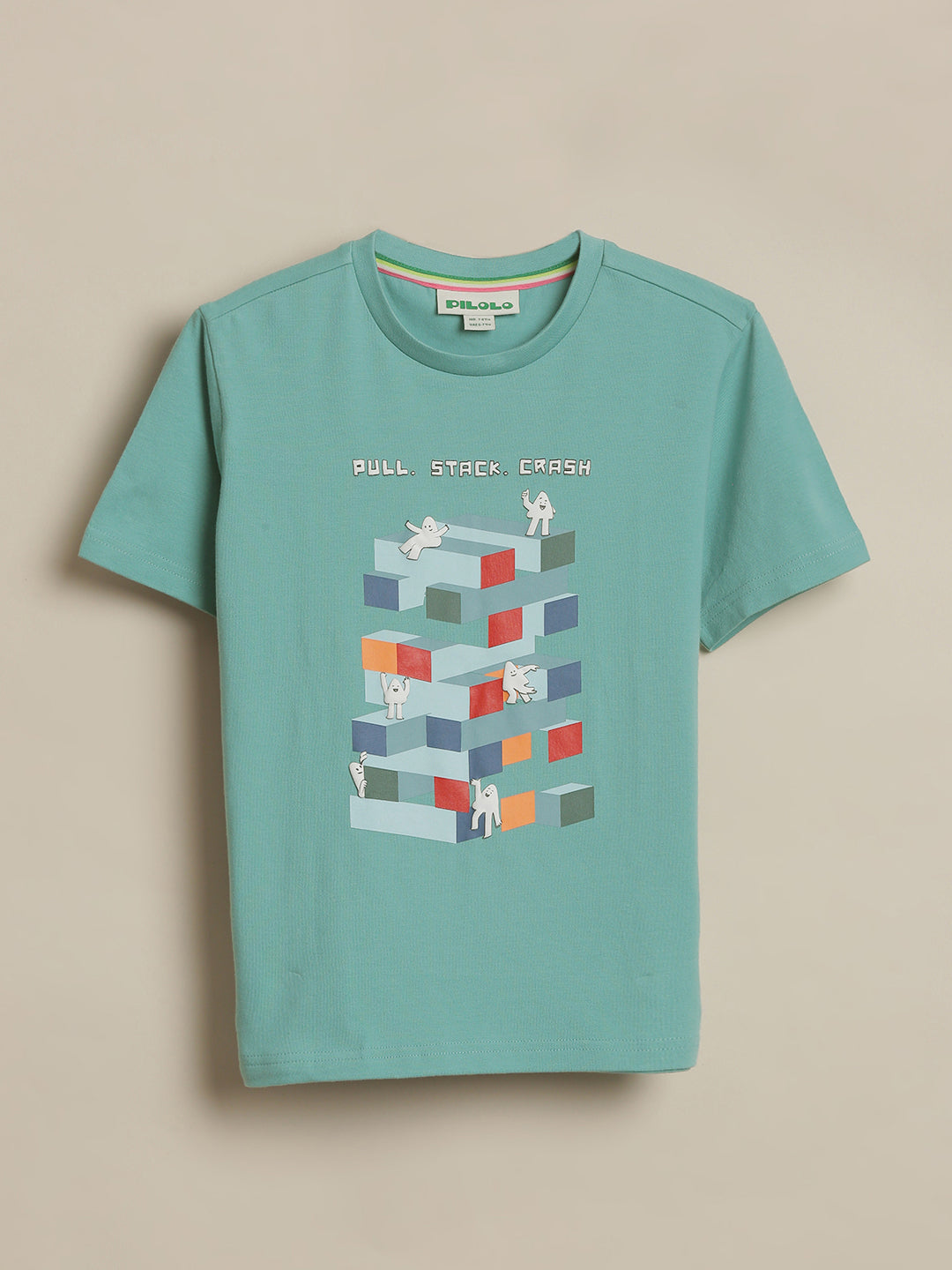 SKU: 087B-Stack'em Up Aqua T-Shirt-Unisex-Meadow brook-2-3 Yr