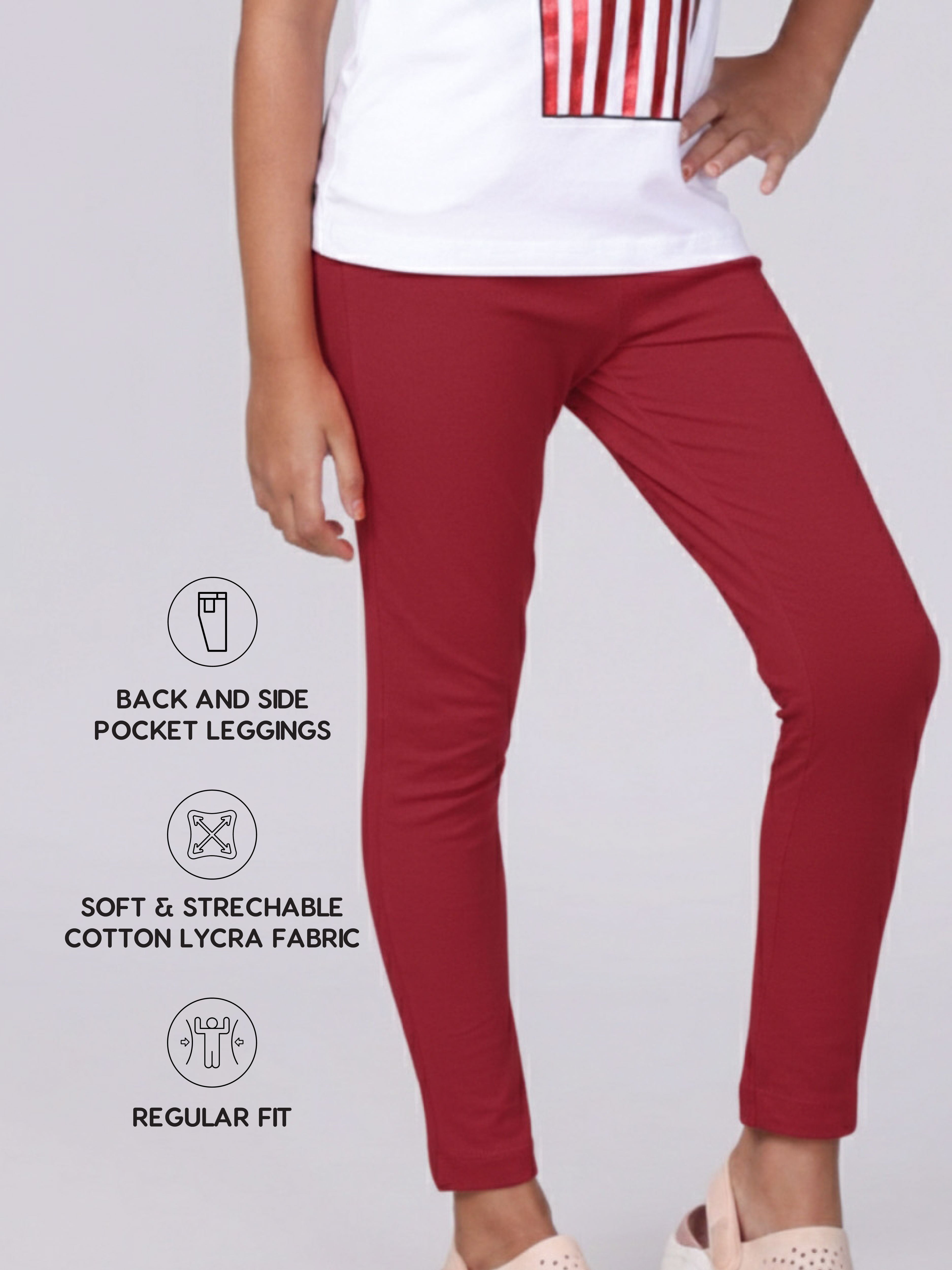 SKU: 052 - Pilolo Soft Cotton Solid Ankle Length Rumba Pocket Leggings For Girls