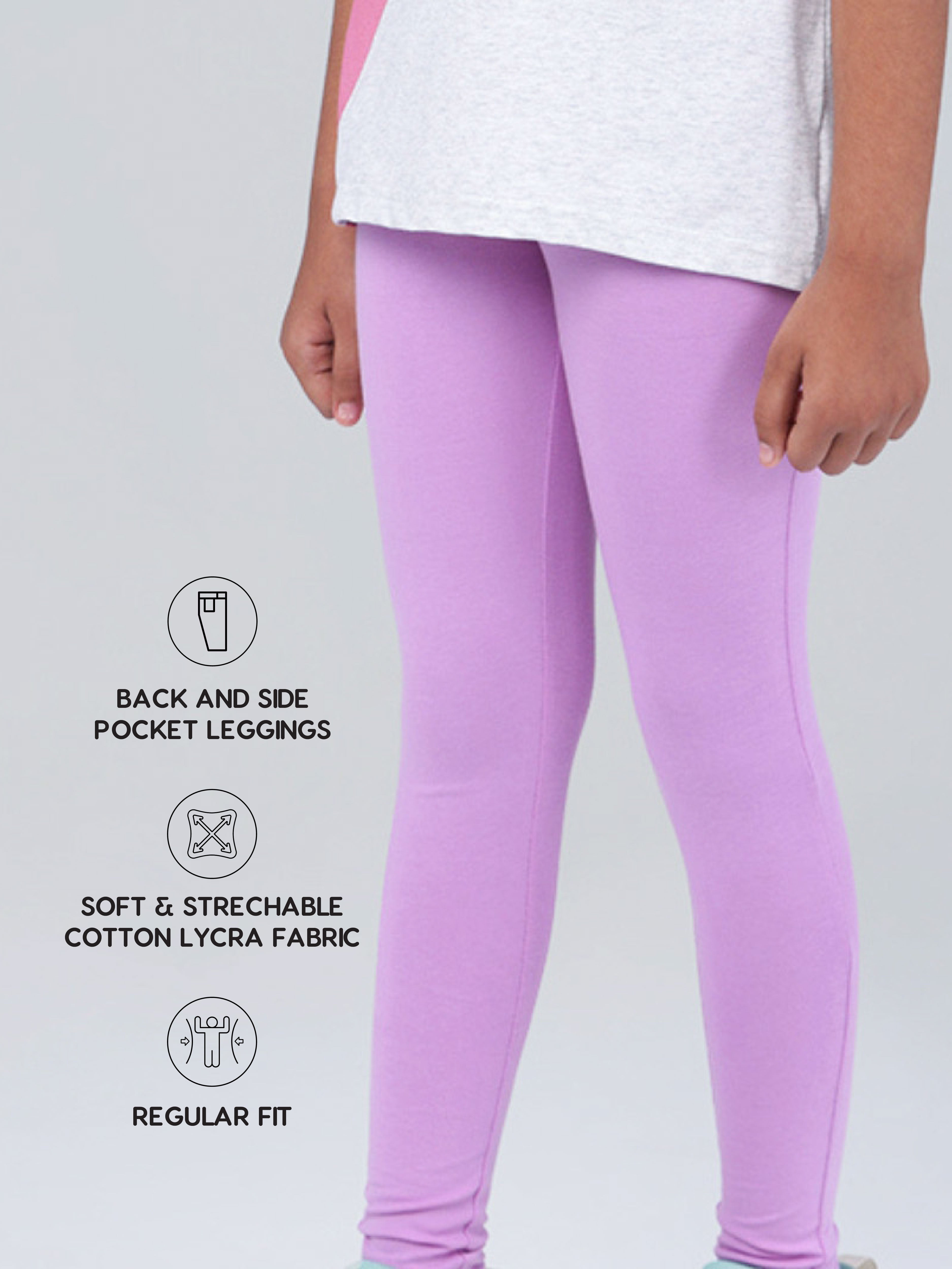 SKU: 052C - Pilolo Soft Cotton Solid Ankle Length Violet Pocket Leggings For Girls