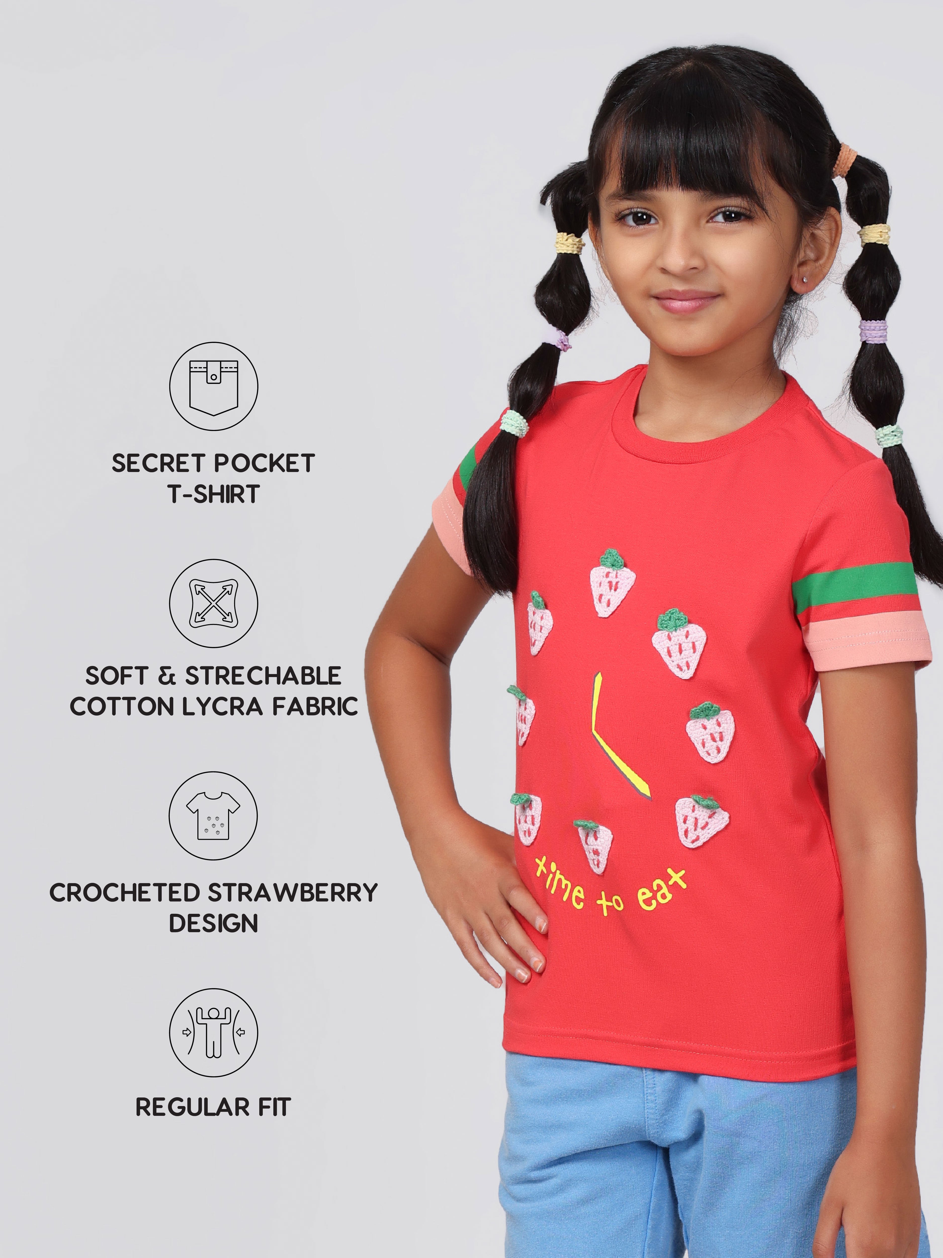 The Pilolo Very Berry Tee is a sweet and playful addition to your little girl's wardrobe. This soft cotton red t-shirt features a charming strawberry applique, adding a fun and fruity touch that's perfect for girls aged 4-9. The design is simple yet adorable, making it a versatile piece for any occasion. As with all Pilolo garments, this t-shirt includes our signature pocket, perfect for carrying tiny treasures and keeping them safe. Hidden inside is a surprise gift, making the Very Berry Tee even more special and exciting for your child. Crafted from a premium fabric blend of 95% cotton and 5% elastane, this t-shirt is soft, breathable, and incredibly comfortable. The fabric is gentle on the skin, ensuring your child can move freely and comfortably throughout the day. Whether you're looking for a fun outfit for a day out, something special for playtime, or a unique gift, the Pilolo Very Berry Tee fits the bill. It also makes a perfect gift for birthdays, holidays, or any special occasion. Note: For the right fit, please refer to the size chart as sizes may vary from brand to brand.