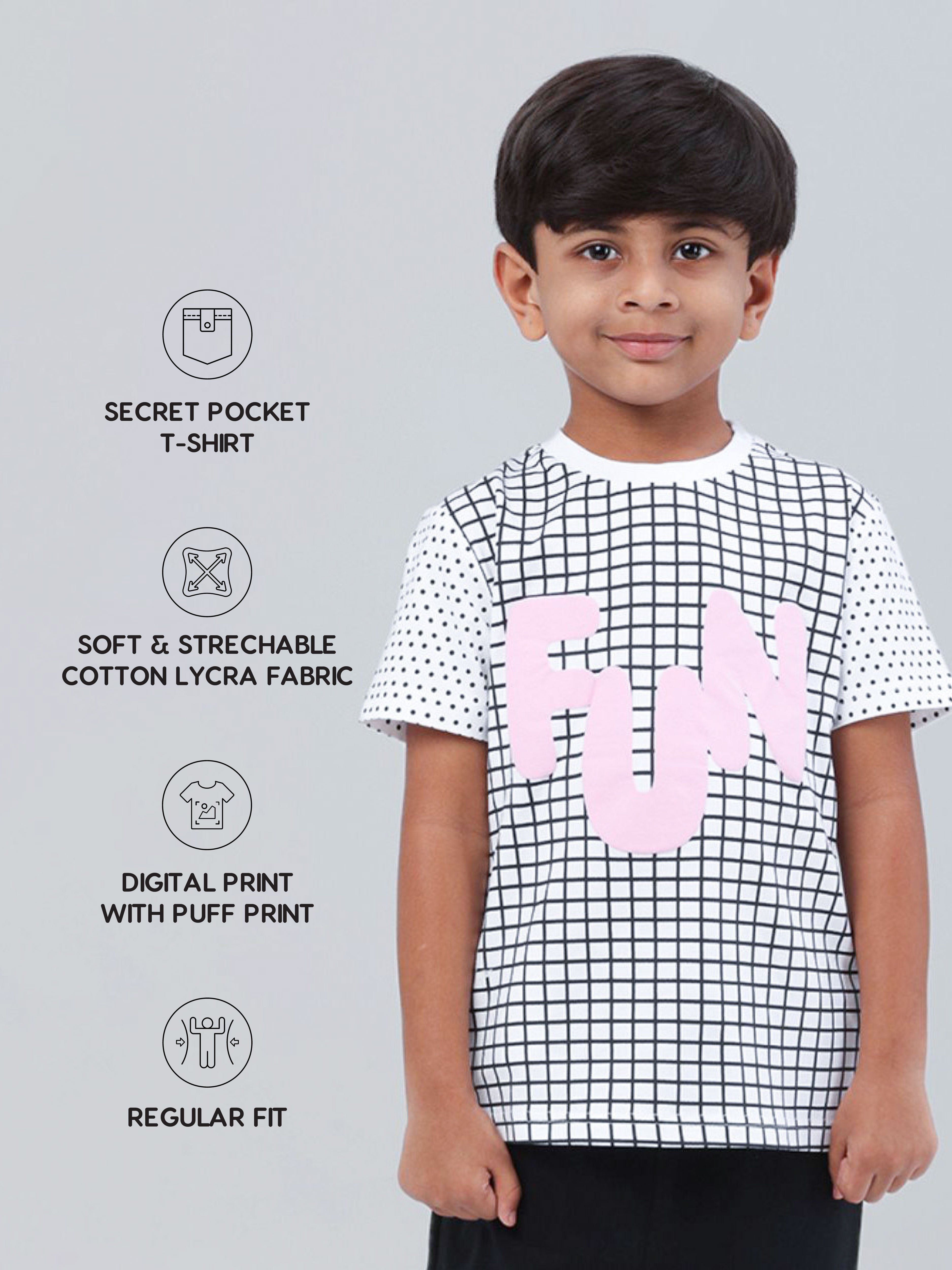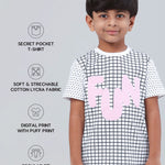 The Pilolo Why So Serious T-shirt is a bold and playful addition to your child's wardrobe. This soft cotton white/black t-shirt features a classic checkered pattern and bold capital letters that spell out FUN, making it a perfect choice for unisex kids aged 4-9. The design is eye-catching and energetic, perfect for adding a fun twist to any outfit. As with all Pilolo garments, this t-shirt includes our signature pocket, perfect for carrying tiny treasures and keeping them safe. Hidden inside is a surprise gift, making the Why So Serious T-shirt even more special and exciting for your child. Crafted from a premium fabric blend of 95% cotton and 5% elastane, this t-shirt is soft, breathable, and incredibly comfortable. The fabric is gentle on the skin, ensuring your child can move freely and comfortably throughout the day. Whether you're looking for a playful outfit for a day out, something special for playtime, or a unique gift, the Pilolo Why So Serious T-shirt fits the bill. It also makes a perfect gift for birthdays, holidays, or any special occasion. Note: For the right fit, please refer to the size chart as sizes may vary from brand to brand.