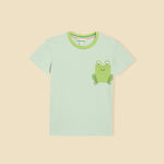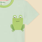 Brighten up your kid's wardrobe with the Friendly Frog Tee to keep them cheerful through the day. The featured tee from our collectible tee collection, comes with a contrasting neckband, a frog pocket and back print. Every piece has a pocket that is adorable and practical - as little hands deserve a place to tuck their little adventures. Made to fit kids 2 to 10.