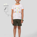 The Wanderer Tee is made for free spirited kids who love to explore in comfort and style. It features puff printed typo and a contrasting collar and sleeveband. Every piece has a pocket that is adorable and practical - as little hands deserve a place to tuck their little adventures. Made to fit kids 2 to 10.