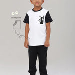 The Zany Zebra Tee adds a fun twist to your kid's wardrobe with its quirky zebra design made from cozy, breathable fabric. The featured tee from our collectible tee collection, comes with a contrasting neckband, a zebra pocket and back print. Every piece has a pocket that is adorable and practical - as little hands deserve a place to tuck their little adventures. Made to fit kids 2 to 10.