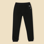Explore new places and celebrate big wins in the Active Black Joggers. The joggers have aesthetic and practical uses as it features embroidery, pockets, an elastic waist, and drawstrings offering your child a firm fit. Fits kids from 2 to 10. Whether its a stroll on a breezy evening or an impromptu dance party, these joggers are built for every whim and fancy. Fit: Regular Fabric: 95% cotton, 5% elastane, French Terry Lycra Care Instruction: Tumble dry with cold water; keep it fresh, do not bleach. Waist: Mid-Rise Color: Black