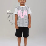 The Pilolo Why So Serious T-shirt is a bold and playful addition to your child's wardrobe. This soft cotton white/black t-shirt features a classic checkered pattern and bold capital letters that spell out FUN, making it a perfect choice for unisex kids aged 4-9. The design is eye-catching and energetic, perfect for adding a fun twist to any outfit. As with all Pilolo garments, this t-shirt includes our signature pocket, perfect for carrying tiny treasures and keeping them safe. Hidden inside is a surprise gift, making the Why So Serious T-shirt even more special and exciting for your child. Crafted from a premium fabric blend of 95% cotton and 5% elastane, this t-shirt is soft, breathable, and incredibly comfortable. The fabric is gentle on the skin, ensuring your child can move freely and comfortably throughout the day. Whether you're looking for a playful outfit for a day out, something special for playtime, or a unique gift, the Pilolo Why So Serious T-shirt fits the bill. It also makes a perfect gift for birthdays, holidays, or any special occasion. Note: For the right fit, please refer to the size chart as sizes may vary from brand to brand.