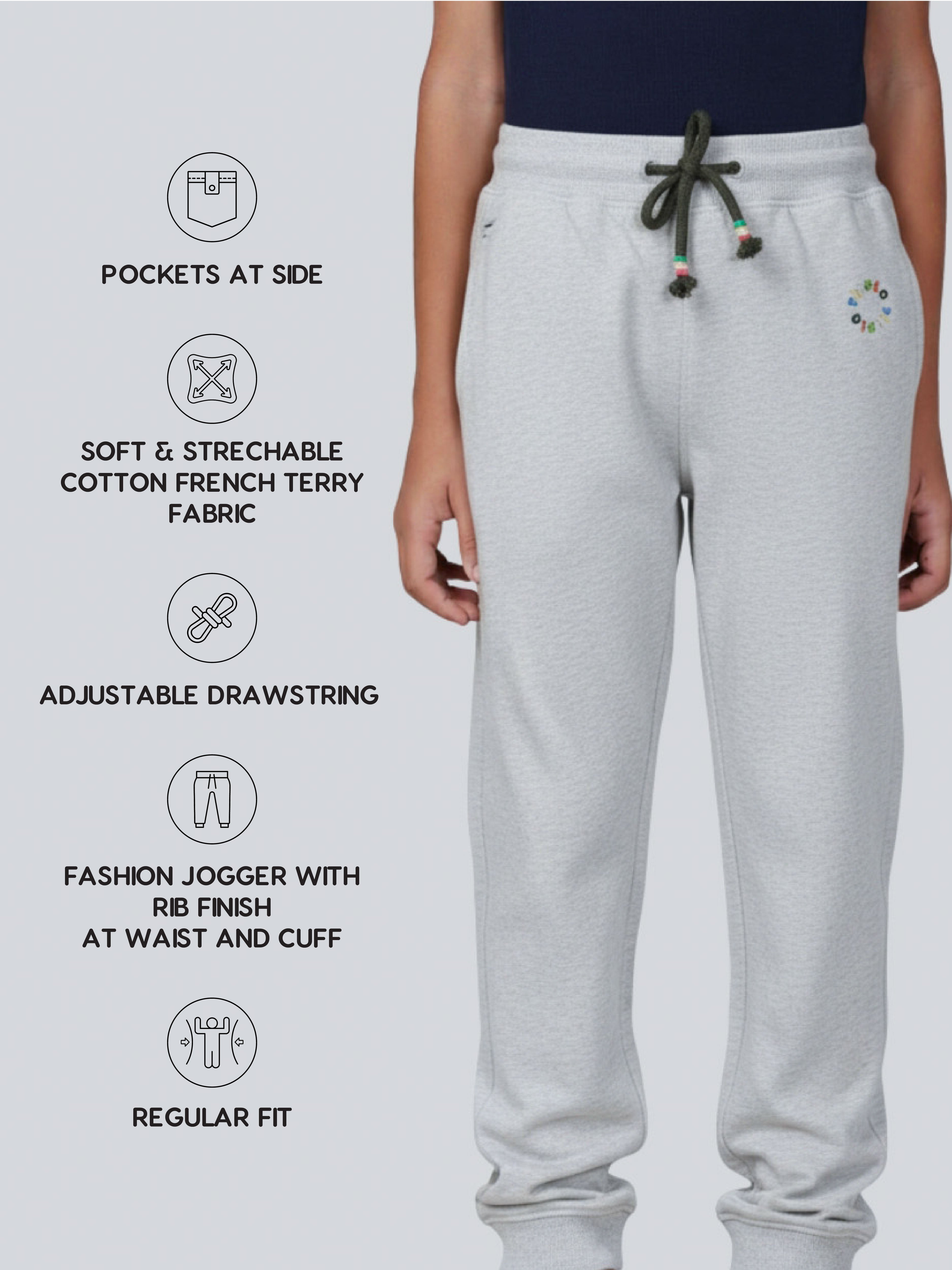 SKU: 051B - Pilolo Grey Melange Comfortable Active Wear With Pockets And Drawstrings Closure Cotton Joggers For Boys
