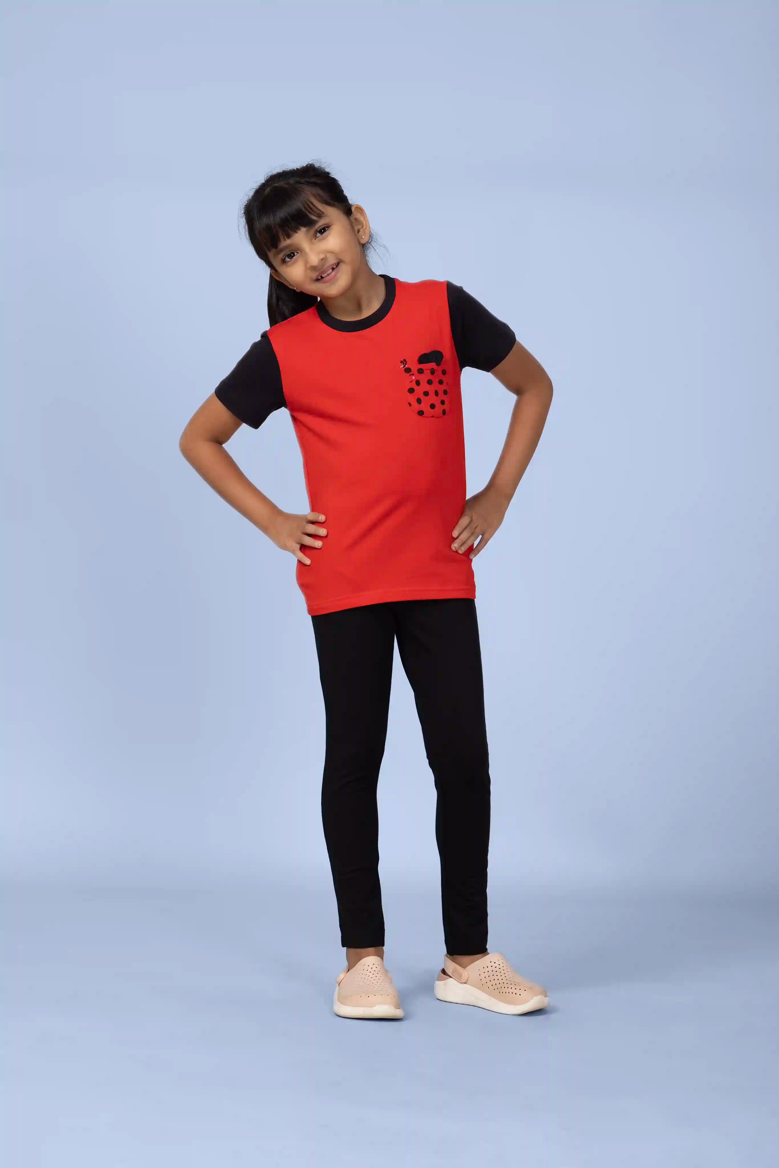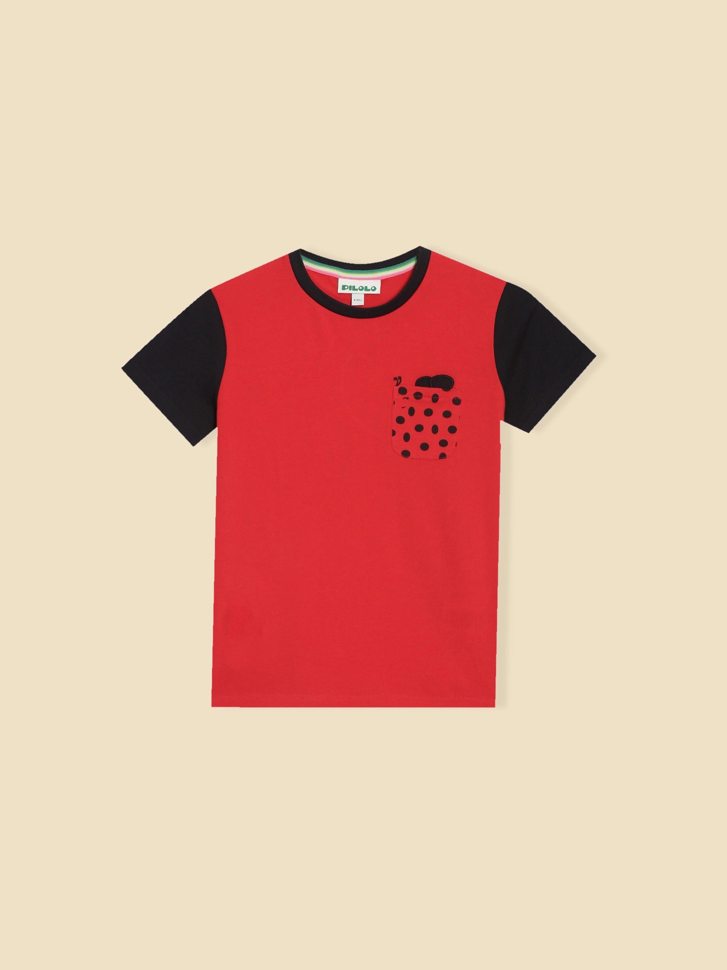 The Lively Ladybug Tee adds a pop of cheer to any day and brings a touch of whimsy with its charming ladybug design and keep your little one buzzing for joy. The featured tee from our collectible tee collection, comes with a contrasting neckband, a ladybug pocket and back print. Every piece has a pocket that is adorable and practical - as little hands deserve a place to tuck their little adventures. Made to fit kids 2 to 10.
