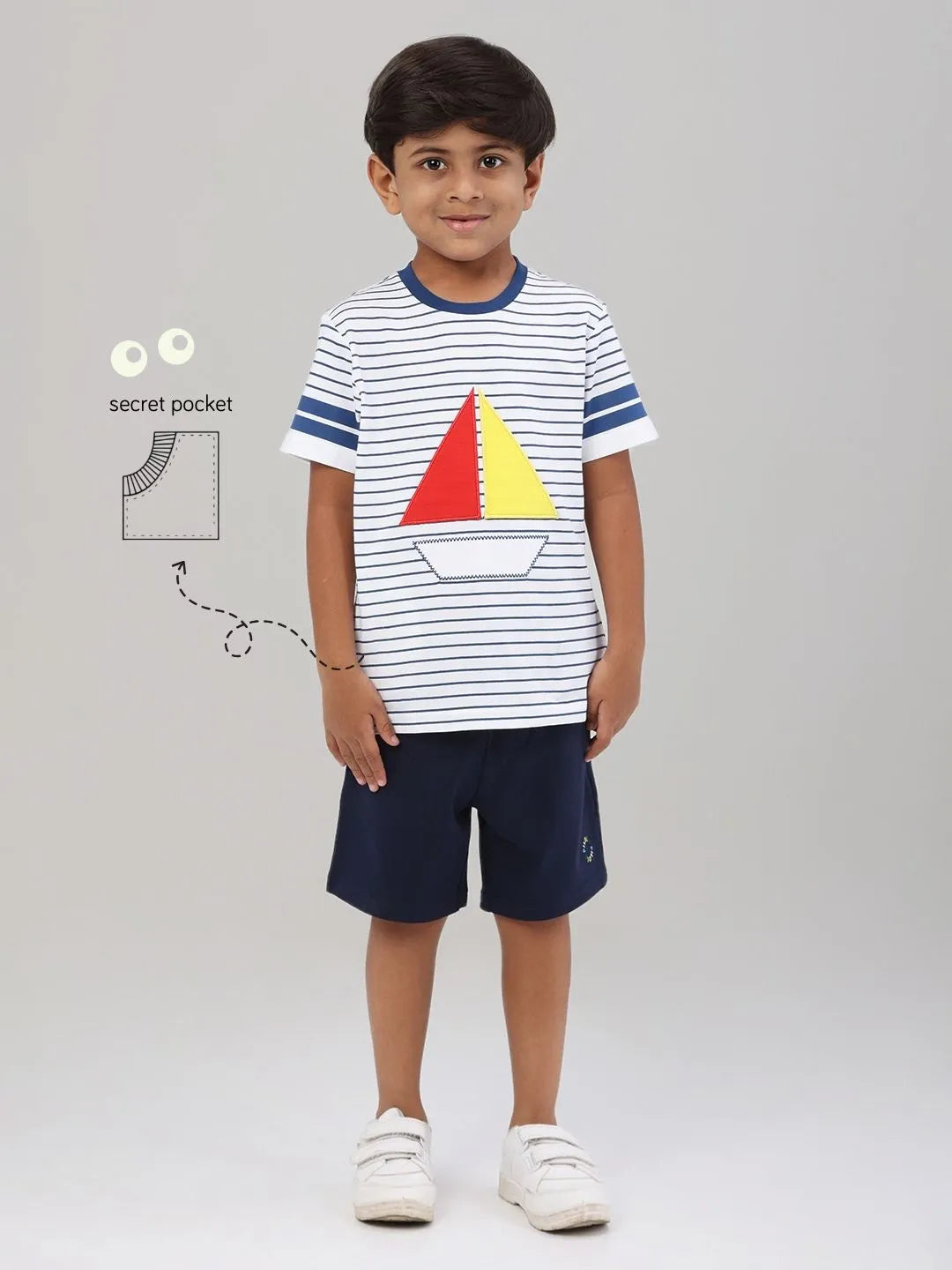 The Pilolo Sailor Ahoy T-shirt is a bright and vibrant addition to your little boy's wardrobe. This blue t-shirt features sailing boat design, adding a playful and adventurous touch. Designed for boys aged 4-9, this t-shirt is perfect for those who love a fun and bold look. As with all Pilolo garments, this t-shirt includes our signature pocket, perfect for carrying tiny treasures and keeping them safe. Hidden inside is a surprise gift, making the Lighthouse T-shirt even more special and exciting for your child. Crafted from a premium fabric blend of 95% cotton and 5% elastane, this t-shirt is soft, stretchy, and incredibly comfortable. The fabric is gentle on the skin, ensuring your child can move freely and comfortably throughout the day. Whether you're looking for a casual outfit that stands out, something unique for a day out, or a special gift, the Pilolo Lighthouse T-shirt fits the bill. It also makes a perfect gift for birthdays, holidays, or any special occasion. Note: For the right fit, please refer to the size chart as sizes may vary from brand to brand.