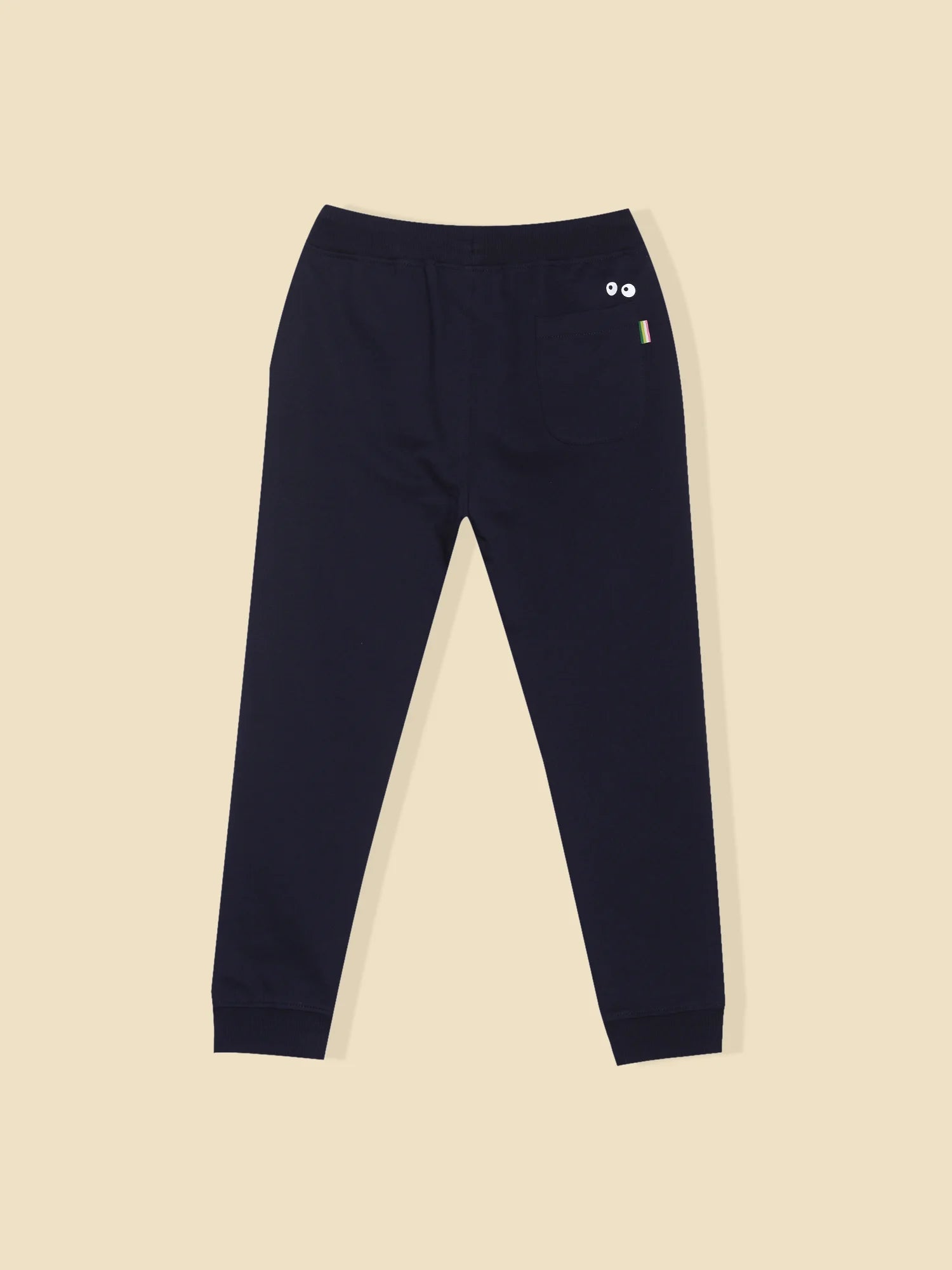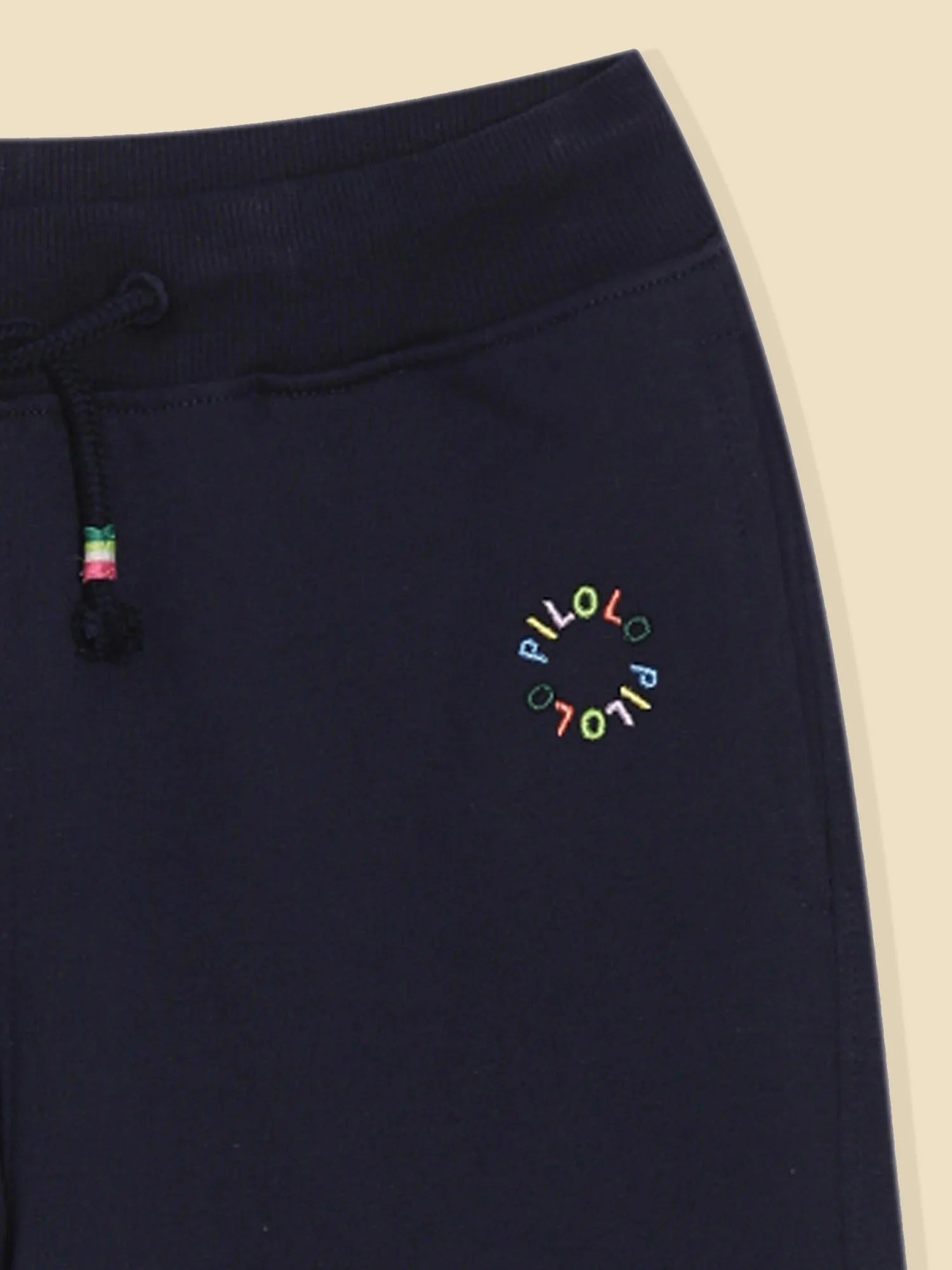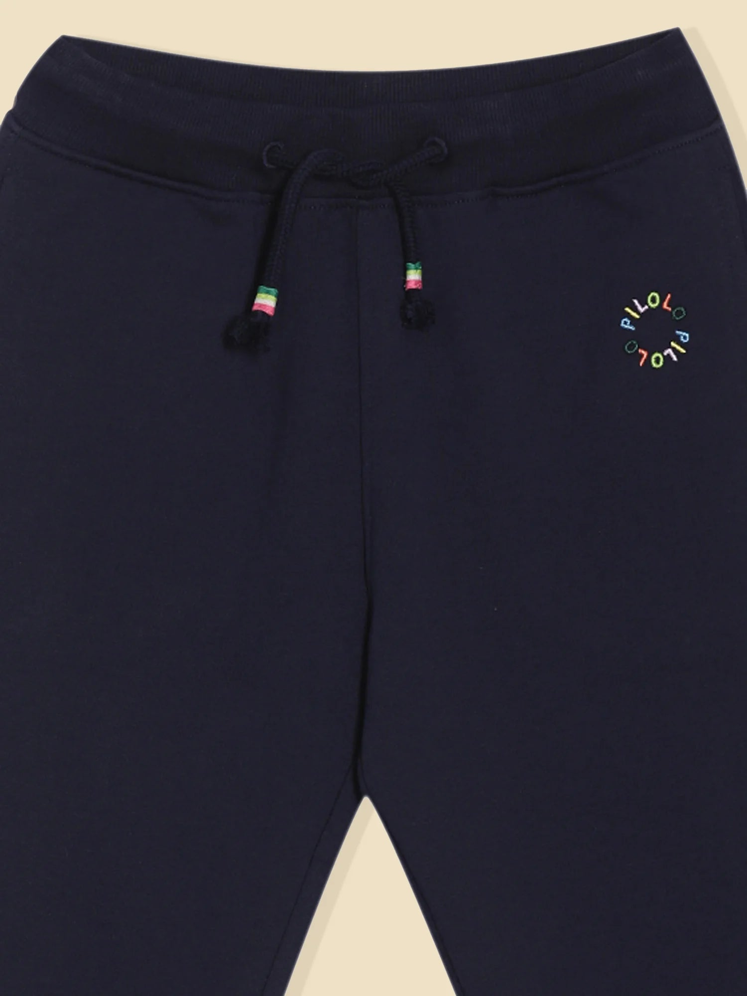 Run, jump and make memories without missing a beat in the Active Navy Joggers. The joggers have aesthetic and practical uses as it features embroidery, pockets, an elastic waist, and drawstrings offering your child a firm fit. Fits kids from 2 to 10. Designed for non-stop adventures, free movement and plenty of giggles. Fit: Regular Fabric: 95% cotton, 5% elastane, French Terry Lycra Care Instruction: Tumble dry with cold water; keep it fresh, do not bleach. Waist: Mid-Rise Color: Navy Blue