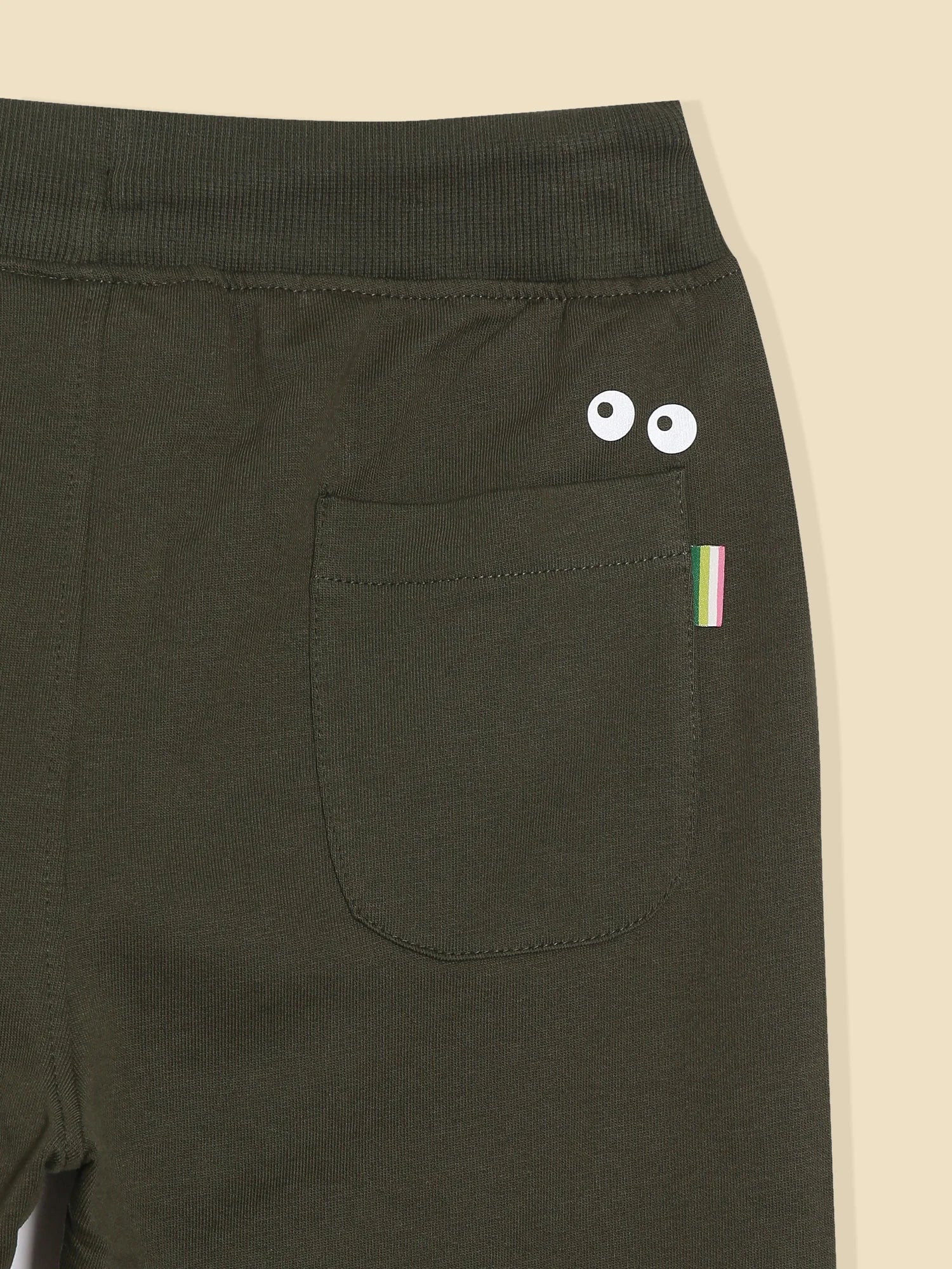 Have epic water balloon fights or build sandcastles in the sand pit in the Active Rifle Green Joggers. The joggers have aesthetic and practical uses as it features embroidery, pockets, an elastic waist, and drawstrings offering your child a firm fit. Fits kids from 2 to 10 Perfect for everyday, practical styling and a little bit of fun. Fit: Regular Fabric: 95% cotton, 5% elastane, French Terry Lycra Care Instruction: Tumble dry with cold water; keep it fresh, do not bleach. Waist: Mid-Rise Color: Rifle Green