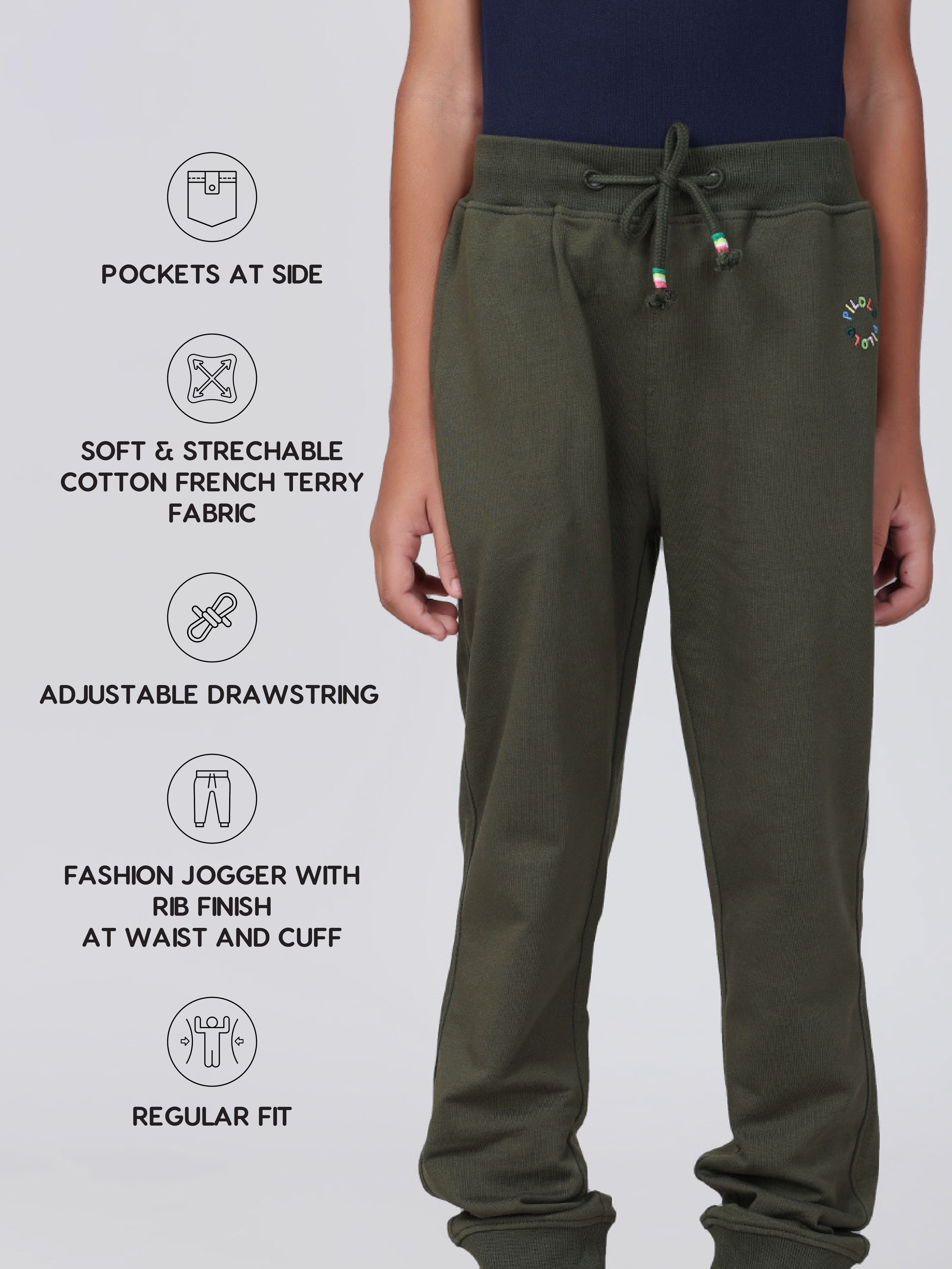 SKU: 051C - Pilolo Rifle Green Comfortable Active Wear With Pockets And Drawstrings Closure Cotton Joggers For Boys