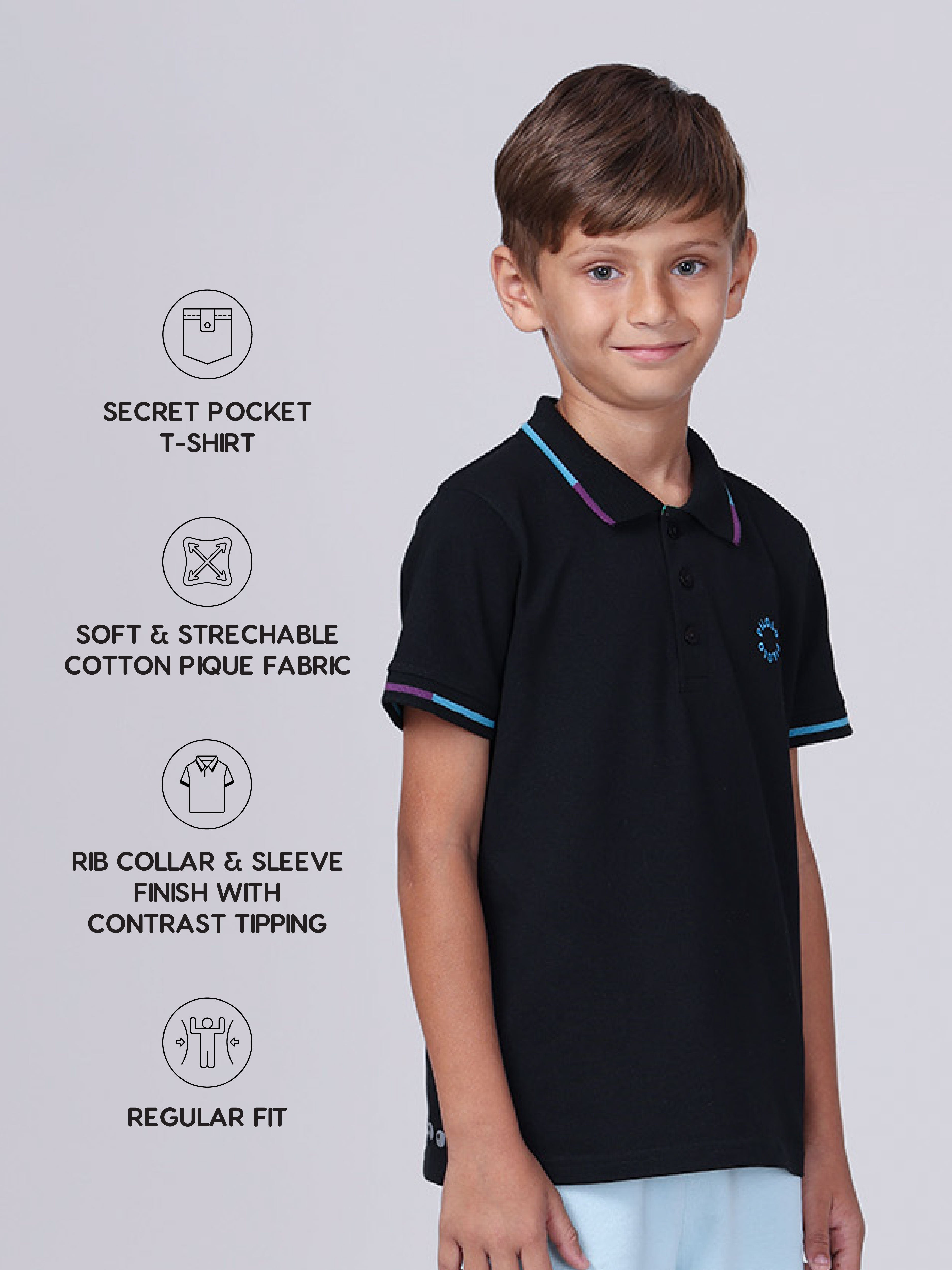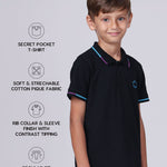 SKU: 050C - Pilolo Black Polo Cotton Designed Collar Pocket T-Shirt For Boys