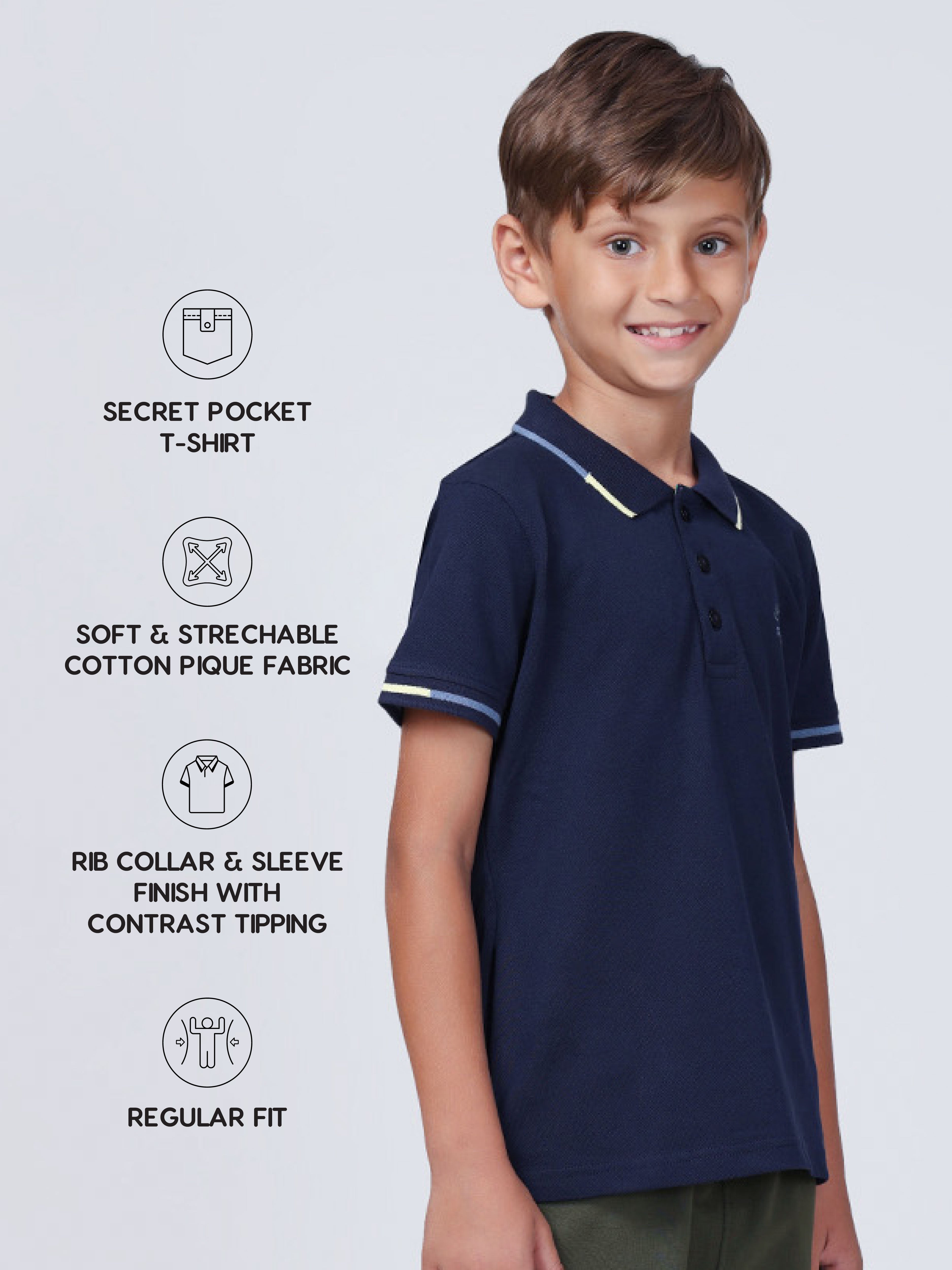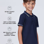 SKU: 050B - Pilolo Navy Polo Cotton Designed Collar Pocket T-Shirt For Boys