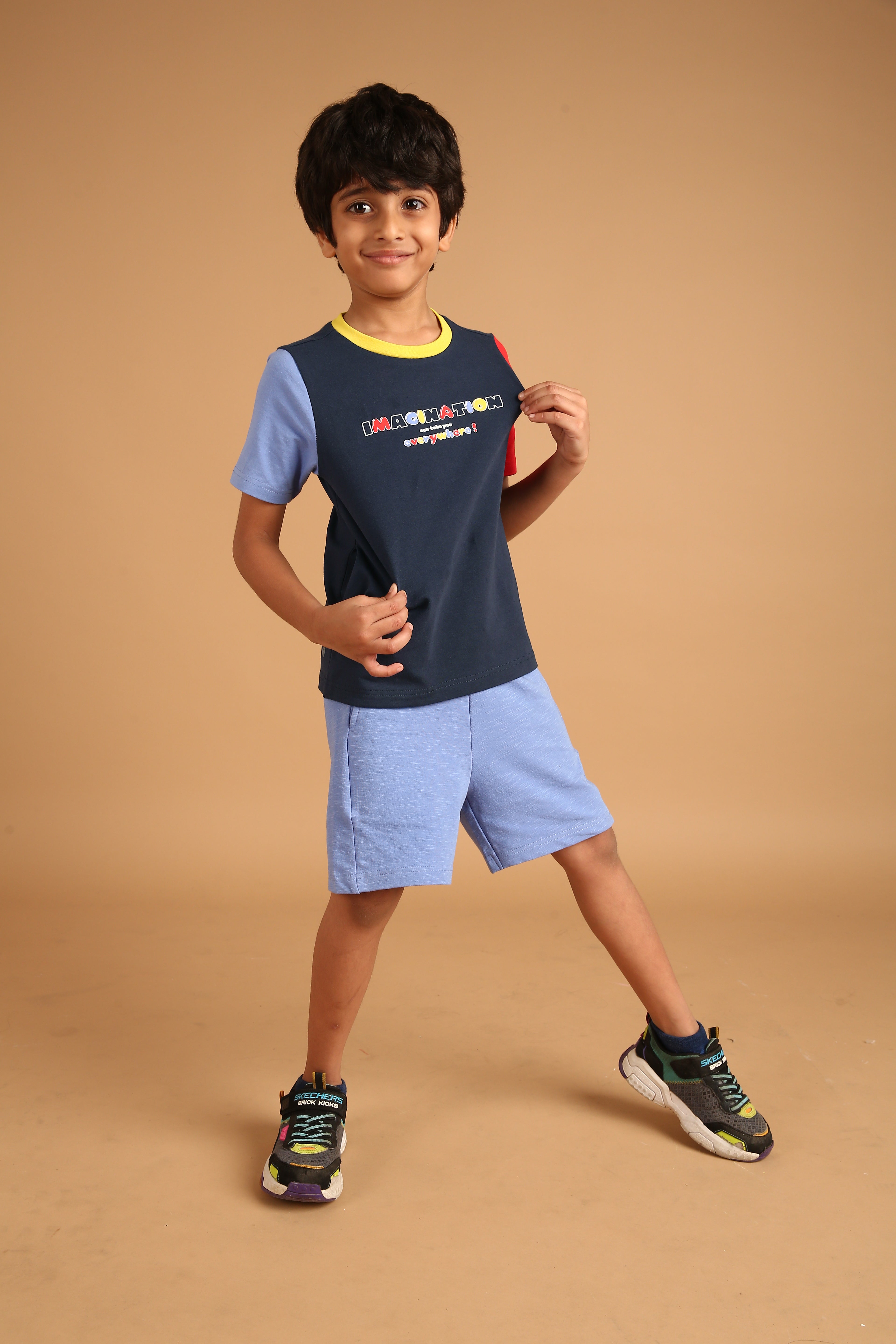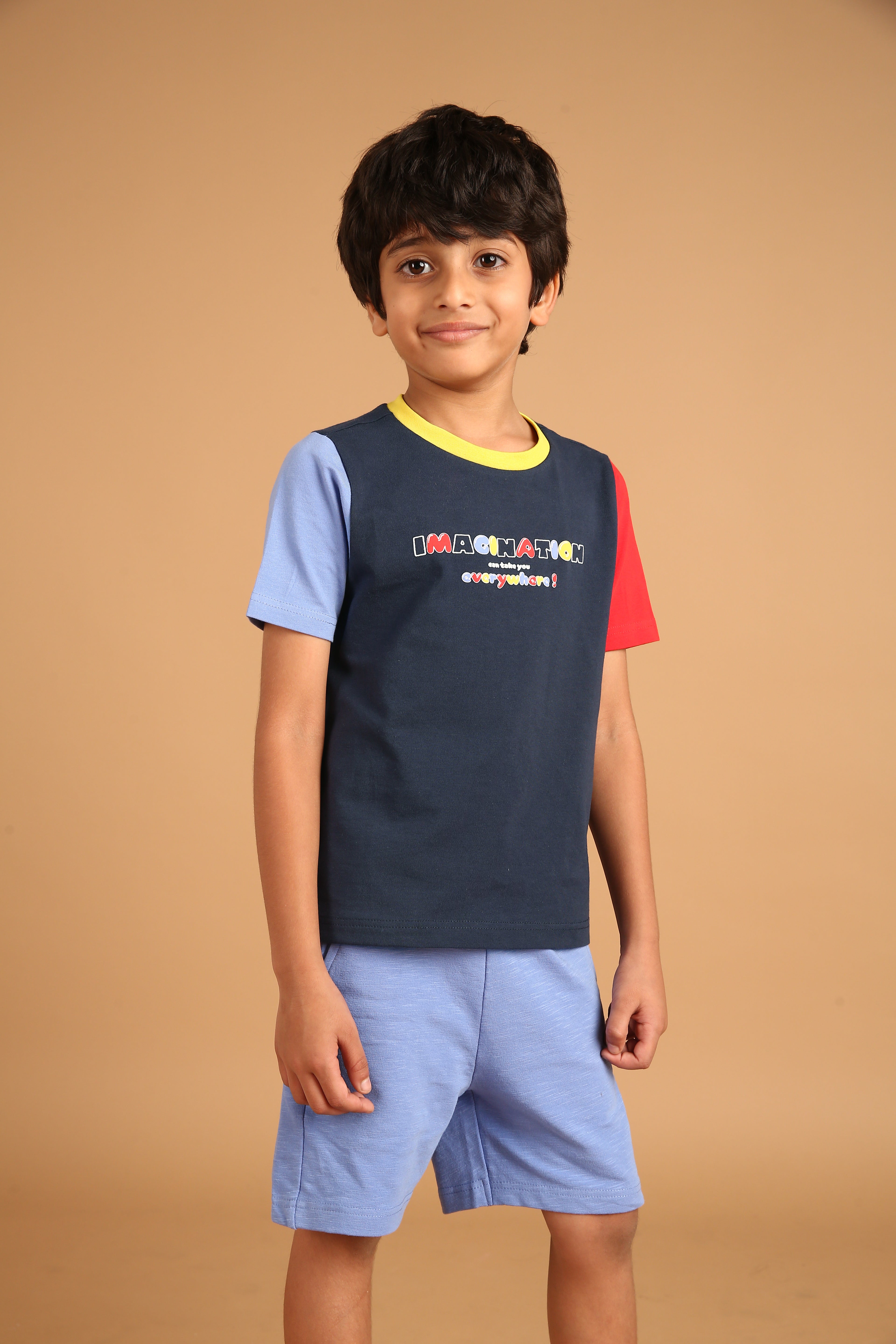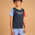 SKU: 082A - Pilolo Building Block Colorblock Imagination Outer Space Cotton Pocket T-Shirt For Boys