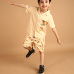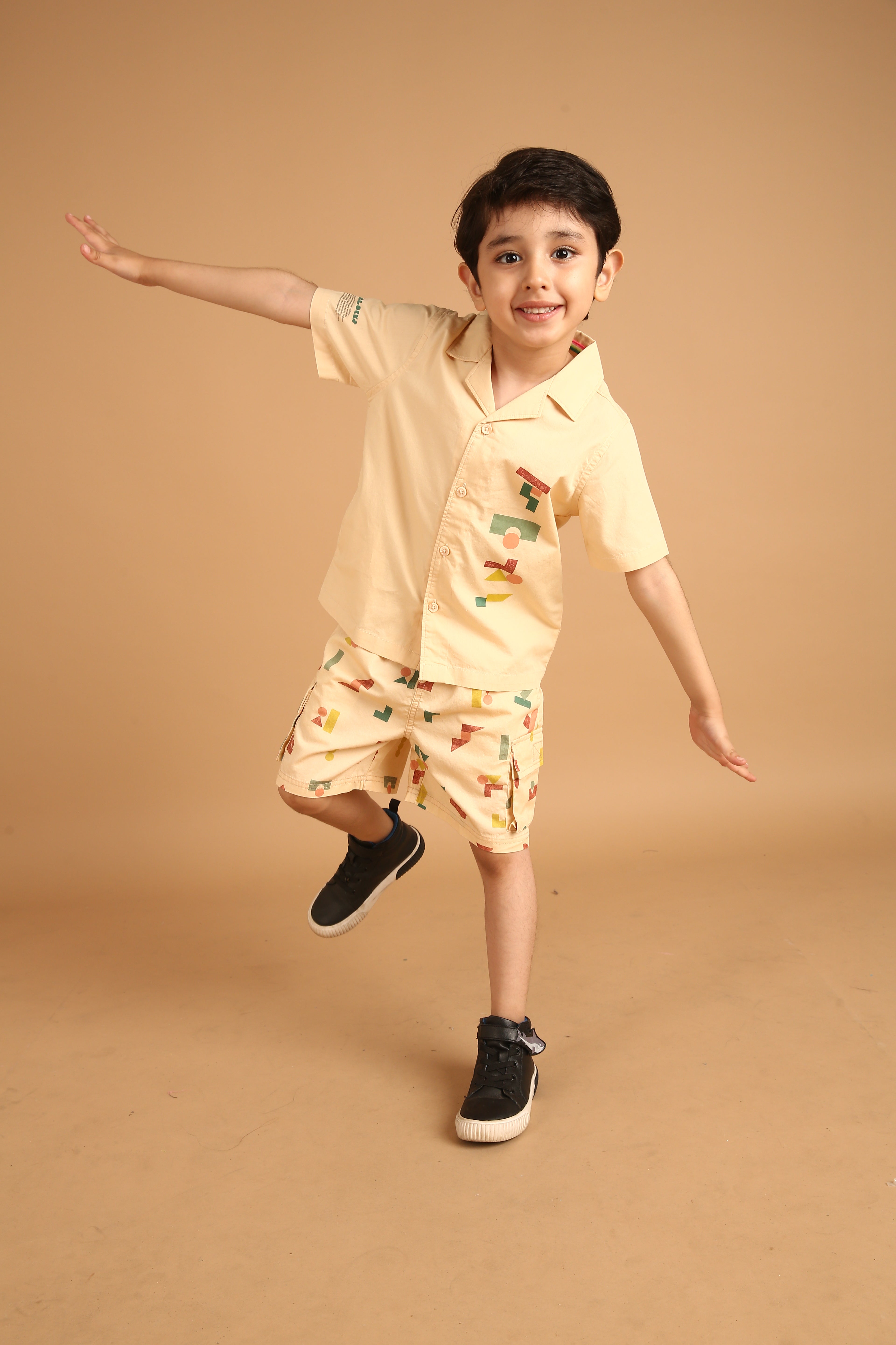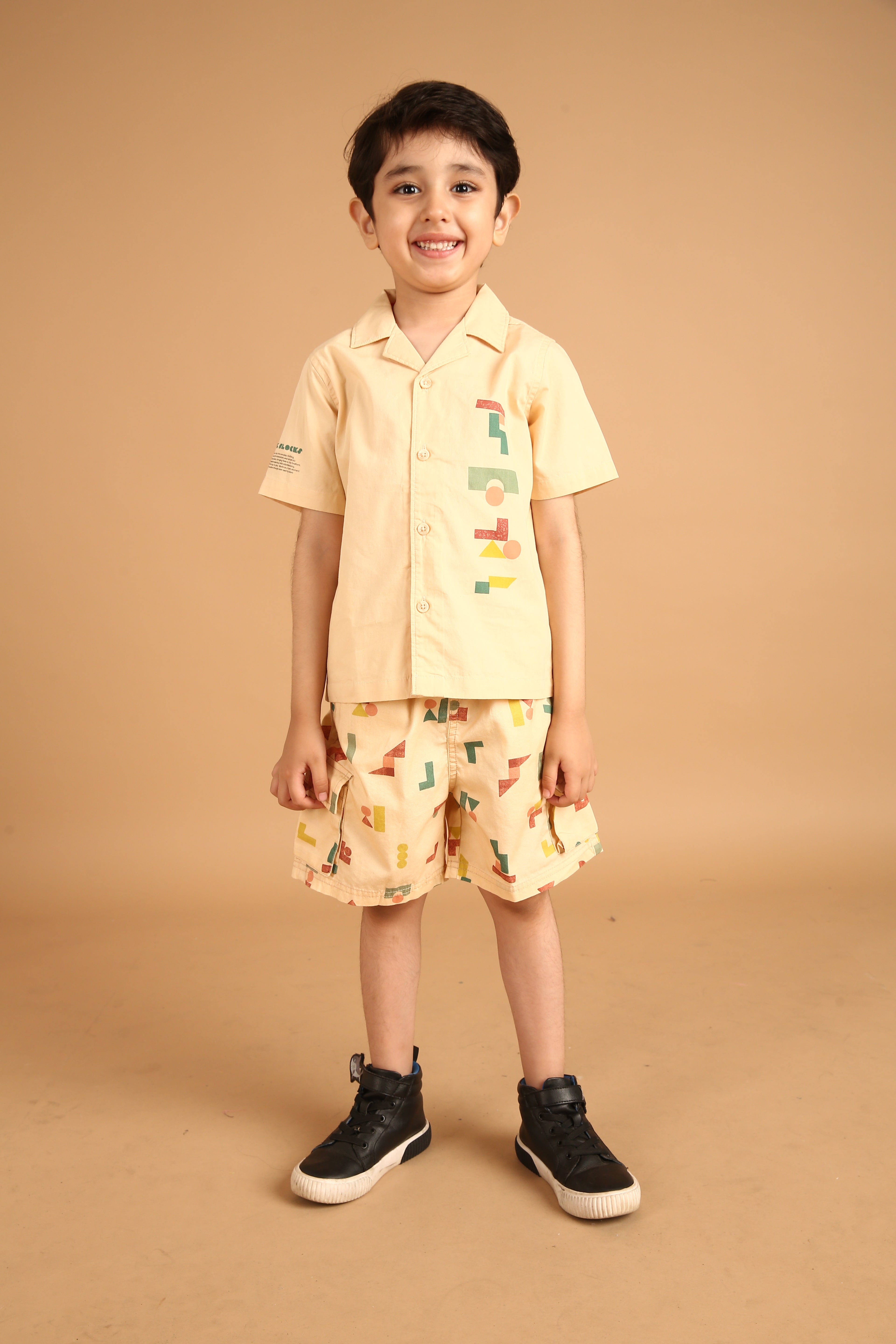SKU: 109 - Pilolo Co-Ord Set Block Parchment Top N Bottom Wowen Printed Shirts and Shorts Set For Boys