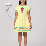 The Pilolo Ice-Cream Dress is a delightful and playful addition to your little girl's wardrobe. This soft cotton yellow dress features a fun ice cream motif and ric-rac detailing, adding a sweet and charming touch that’s perfect for girls aged 4-9. The design is both fun and stylish, making it ideal for any occasion where your child wants to stand out. As with all Pilolo garments, this dress includes our signature pocket, perfect for carrying tiny treasures and keeping them safe. Hidden inside is a surprise gift, making the Ice-Cream Dress even more special and exciting for your child. Crafted from a premium fabric blend of 95% cotton and 5% elastane, this dress is soft, breathable, and incredibly comfortable. The fabric is gentle on the skin, ensuring your child can move freely and comfortably throughout the day. Whether you're looking for a playful outfit for a day out, something special for a party, or a unique gift, the Pilolo Ice-Cream Dress fits the bill. It also makes a perfect gift for birthdays, holidays, or any special occasion. Note: For the right fit, please refer to the size chart as sizes may vary from brand to brand.