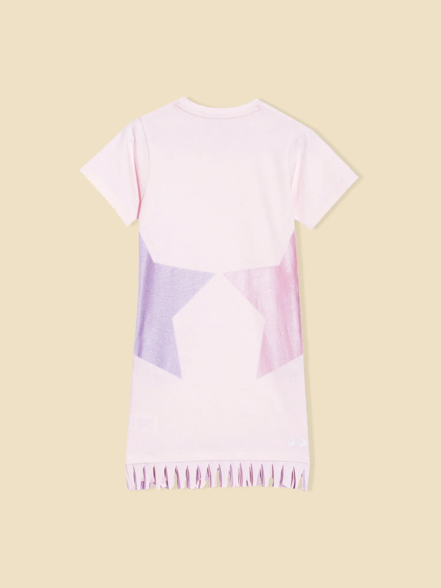 The Pilolo Rock and Roll Dress is a fun and lively addition to your little girl's wardrobe. This soft cotton pink dress features a playful fringed hem, making it the perfect outfit to inspire your child to dance to their own rhythm. Designed for girls aged 4-9, this dress adds a touch of joy and movement to any occasion. As with all Pilolo garments, this dress includes our signature pocket, perfect for carrying tiny treasures and keeping them safe. Hidden inside is a surprise gift, making the Rock and Roll Dress even more special and exciting for your child. Crafted from a premium fabric blend of 95% cotton and 5% elastane, this dress is soft, breathable, and incredibly comfortable. The fabric is gentle on the skin, ensuring your child can move freely and comfortably throughout the day. Whether you're looking for a playful outfit for a day out, something special for a party, or a unique gift, the Pilolo Rock and Roll Dress fits the bill. It also makes a perfect gift for birthdays, holidays, or any special occasion. Note: For the right fit, please refer to the size chart as sizes may vary from brand to brand.