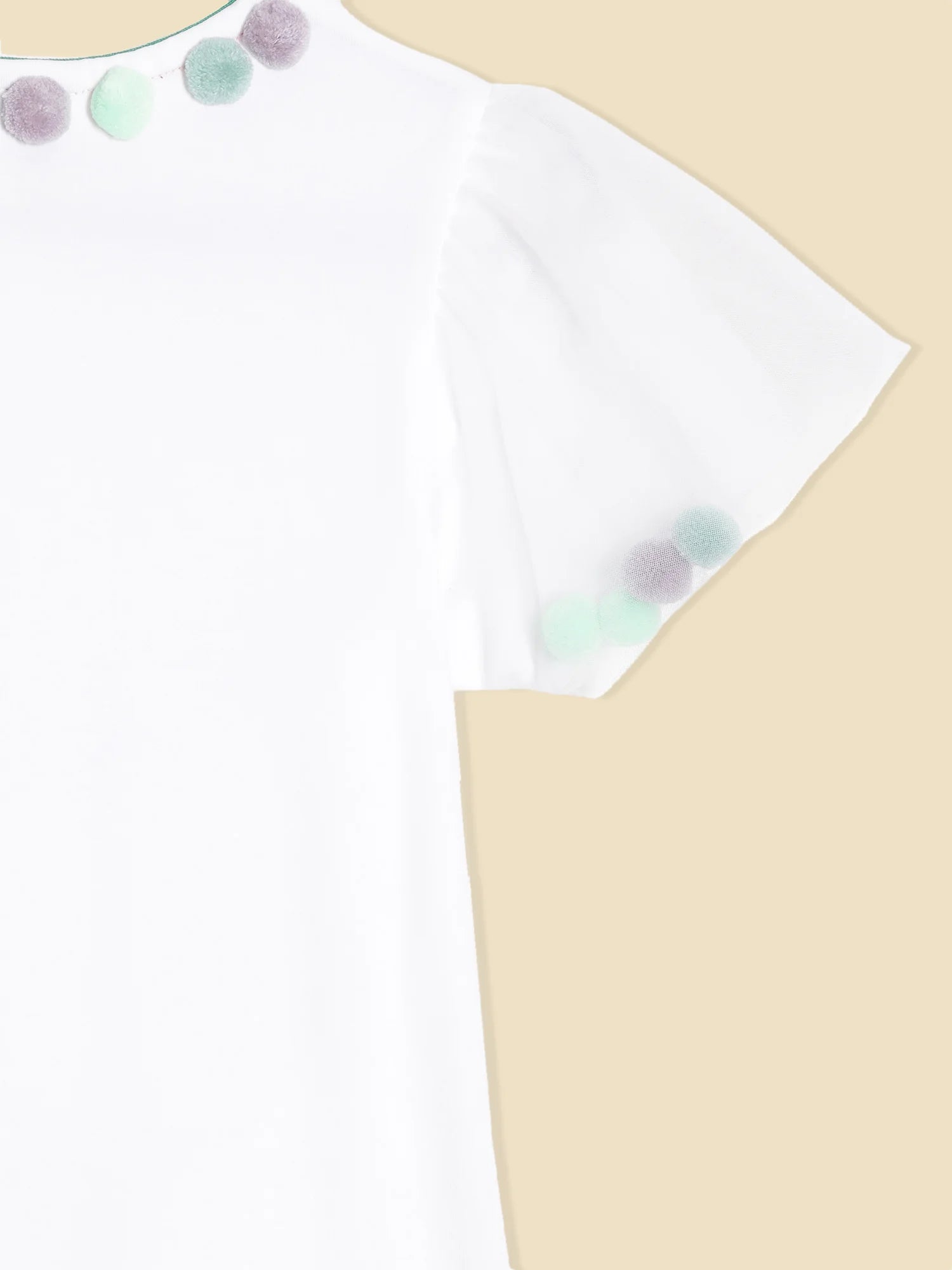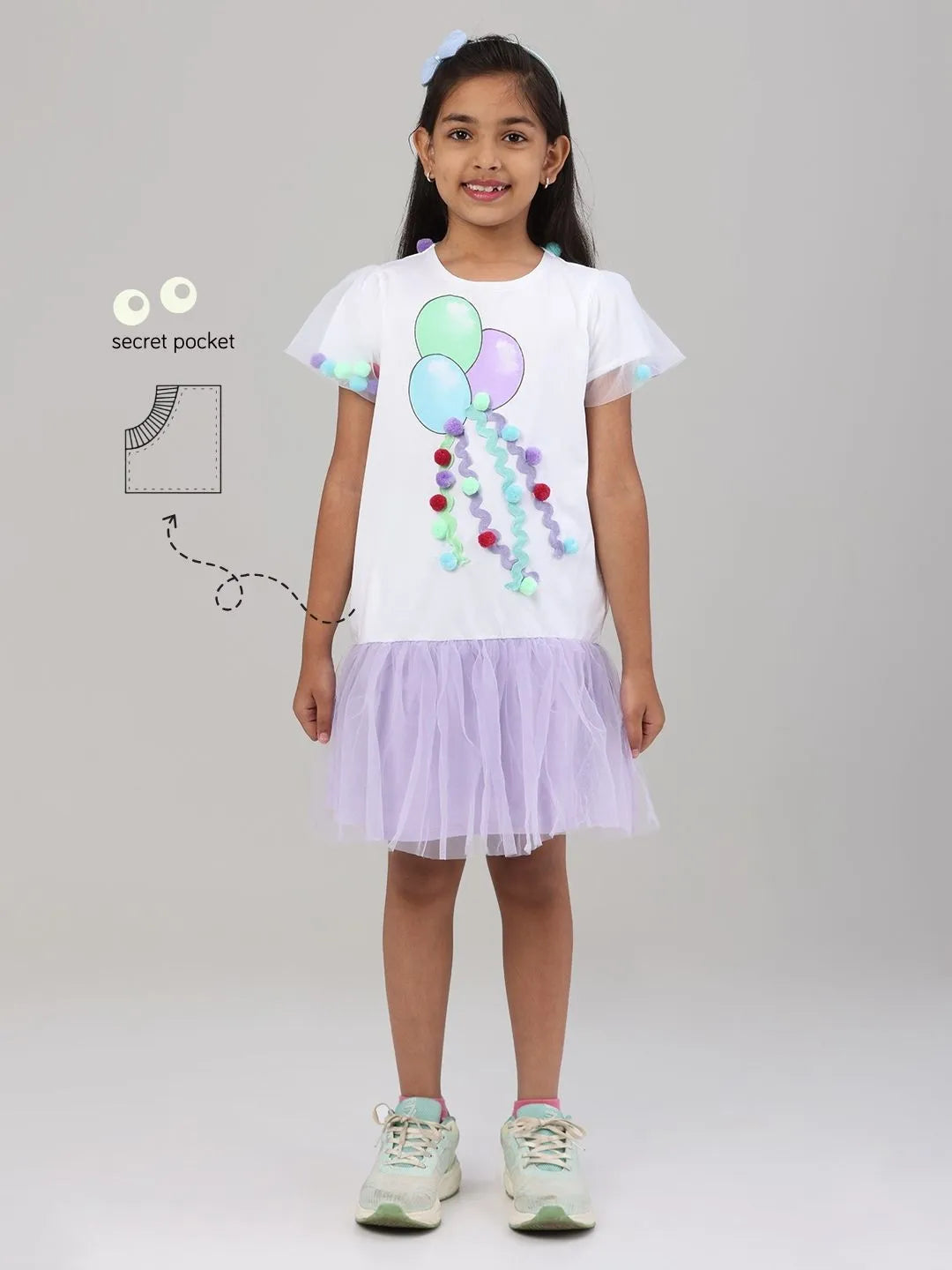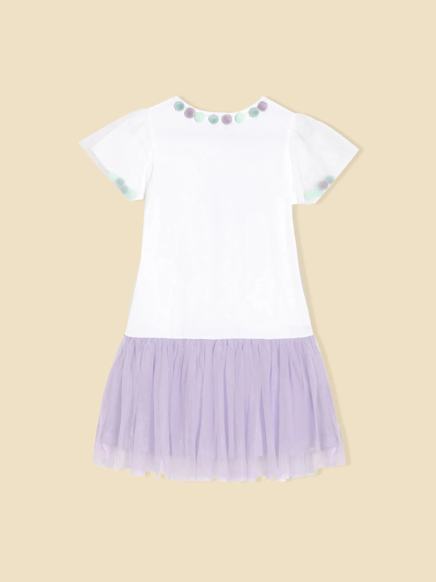 The Pilolo Twirl Balloon Dress is a charming and playful addition to your little girl's wardrobe. This dress features a hand-printed balloon design with gold foil accents that add a touch of flair. The sleeves are adorned with tulle and pompoms, making the dress perfect for girls aged 4-9 who love to twirl and have fun. Available in both white and purple, this dress is designed to stand out at any event. As with all Pilolo garments, this dress includes our signature pocket, perfect for carrying tiny treasures and keeping them safe. Hidden inside is a surprise gift, making the Twirl Balloon Dress even more special and exciting for your child. Crafted from a premium fabric blend of 95% cotton and 5% elastane, this dress is soft, stretchy, and incredibly comfortable. The fabric is gentle on the skin, ensuring your child can move freely and comfortably throughout the day. Whether you're looking for a fun outfit for a day out, something special for a party, or a unique gift, the Pilolo Twirl Balloon Dress fits the bill. It also makes a perfect gift for birthdays, holidays, or any special occasion. Note: For the right fit, please refer to the size chart as sizes may vary from brand to brand.