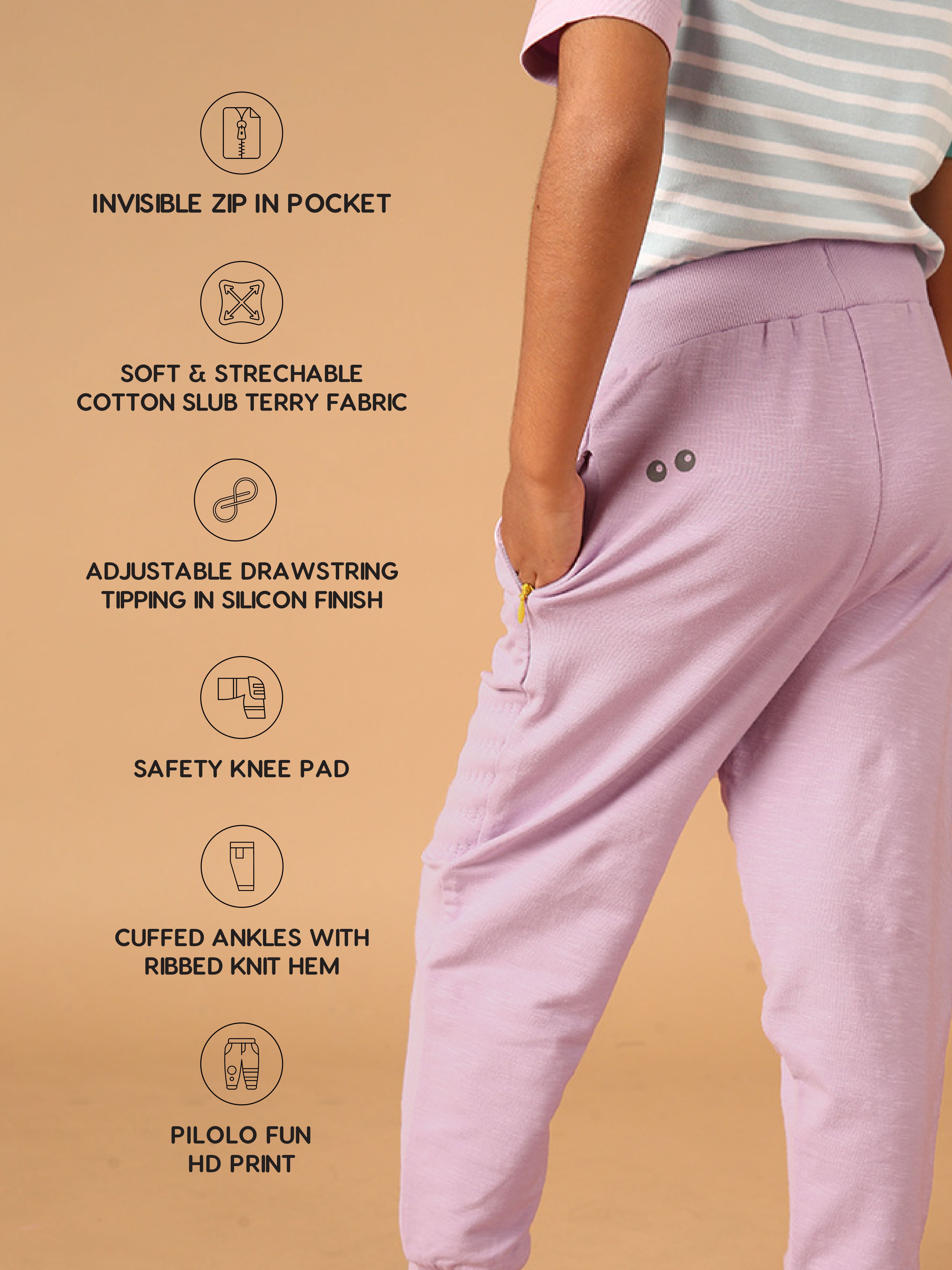 SKU: 097B - Pilolo Soft Lilac Knee Padded Safe Play Active Wear Cotton Zipper Pocket Joggers For Girls