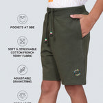 SKU: 049D - Pilolo Rifle Green Comfortable Active Wear With Pockets And Drawstrings Closure Cotton Shorts For Boys