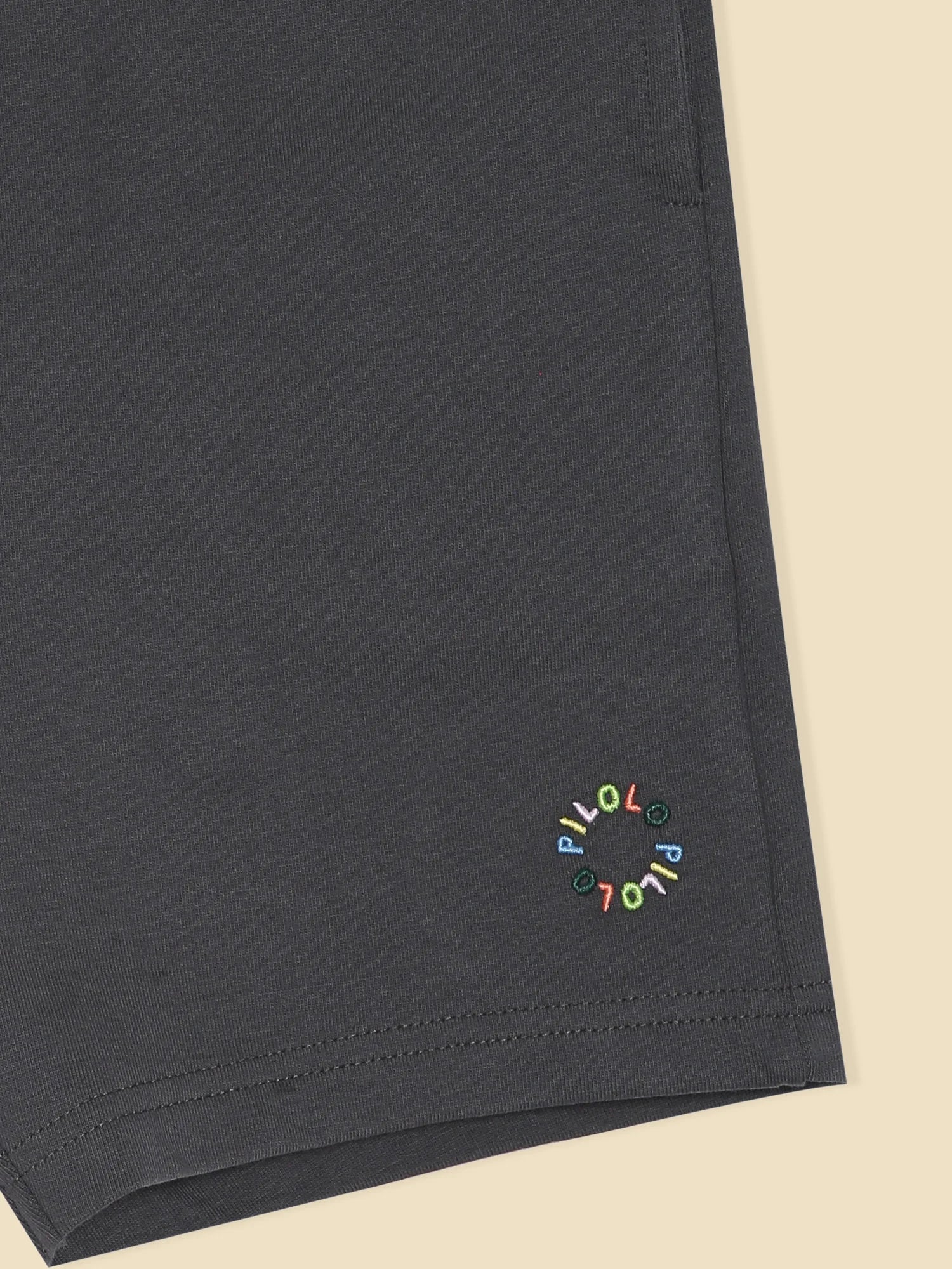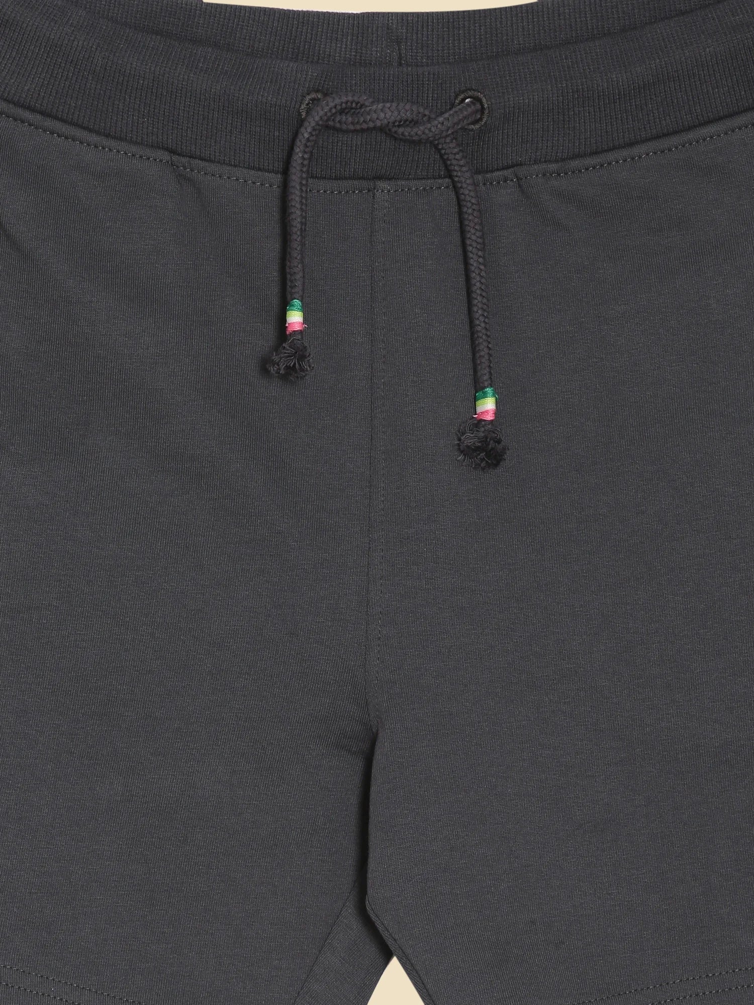 Everyday Woodland Grey Shorts are designed from soft breathable fabric that offers comfort and style. The fun, colorful design have aesthetic and practical uses as it features embroidery, pockets, an elastic waist, and drawstrings offering your child a firm fit. Go on a long hike or go sleuthing saturdays with friends - these shorts are for ready for action Fit: Regular Fabric: 95% cotton, 5% elastane, French Terry Lycra Care Instruction: Tumble dry with cold water; keep it fresh, do not bleach. Waist: Mid-Rise Color: Woodland Grey