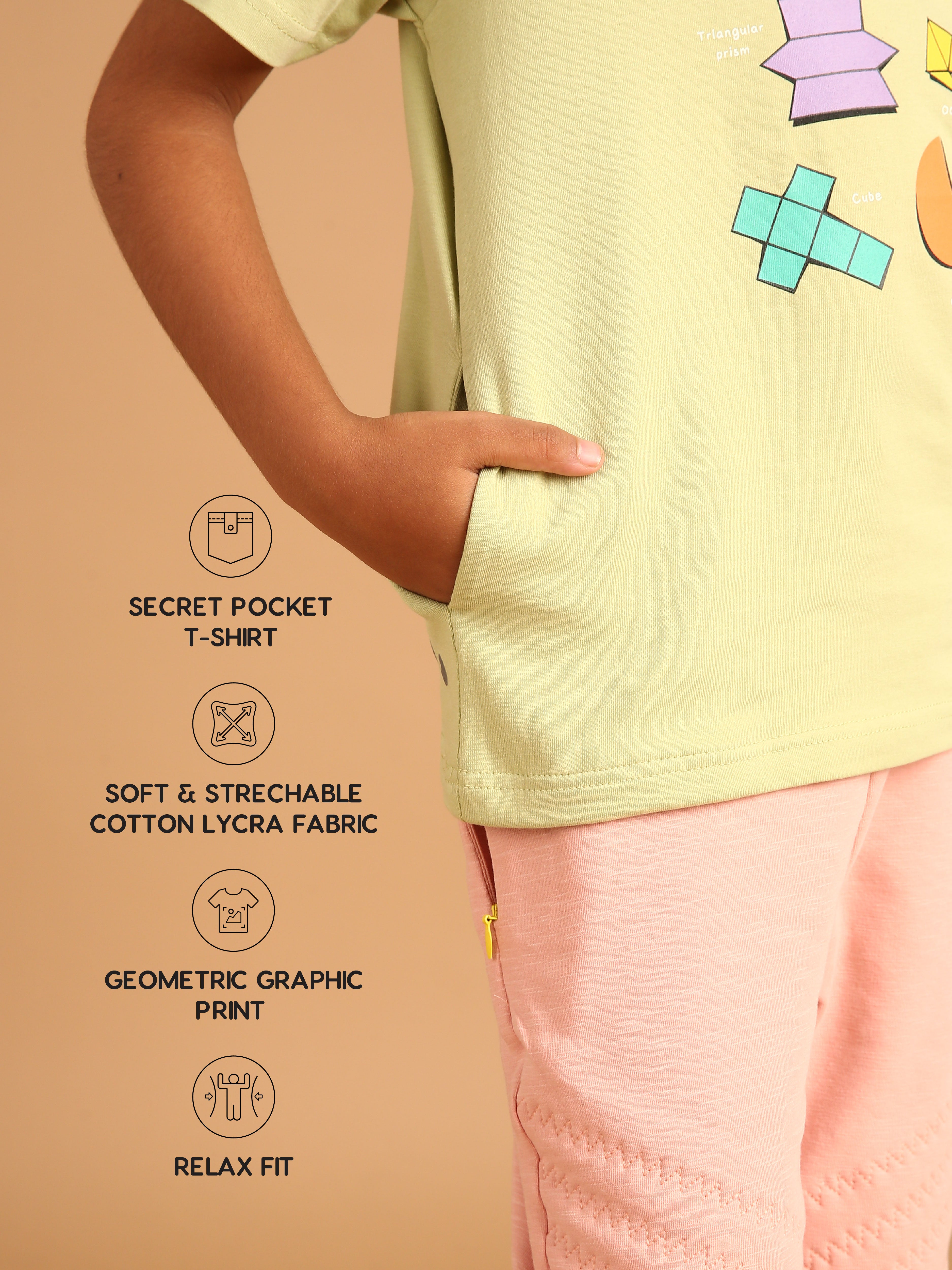 SKU: 111B - Pilolo Building Block 3D Cuboid Pistachio Cotton Pocket T-Shirt For Boys