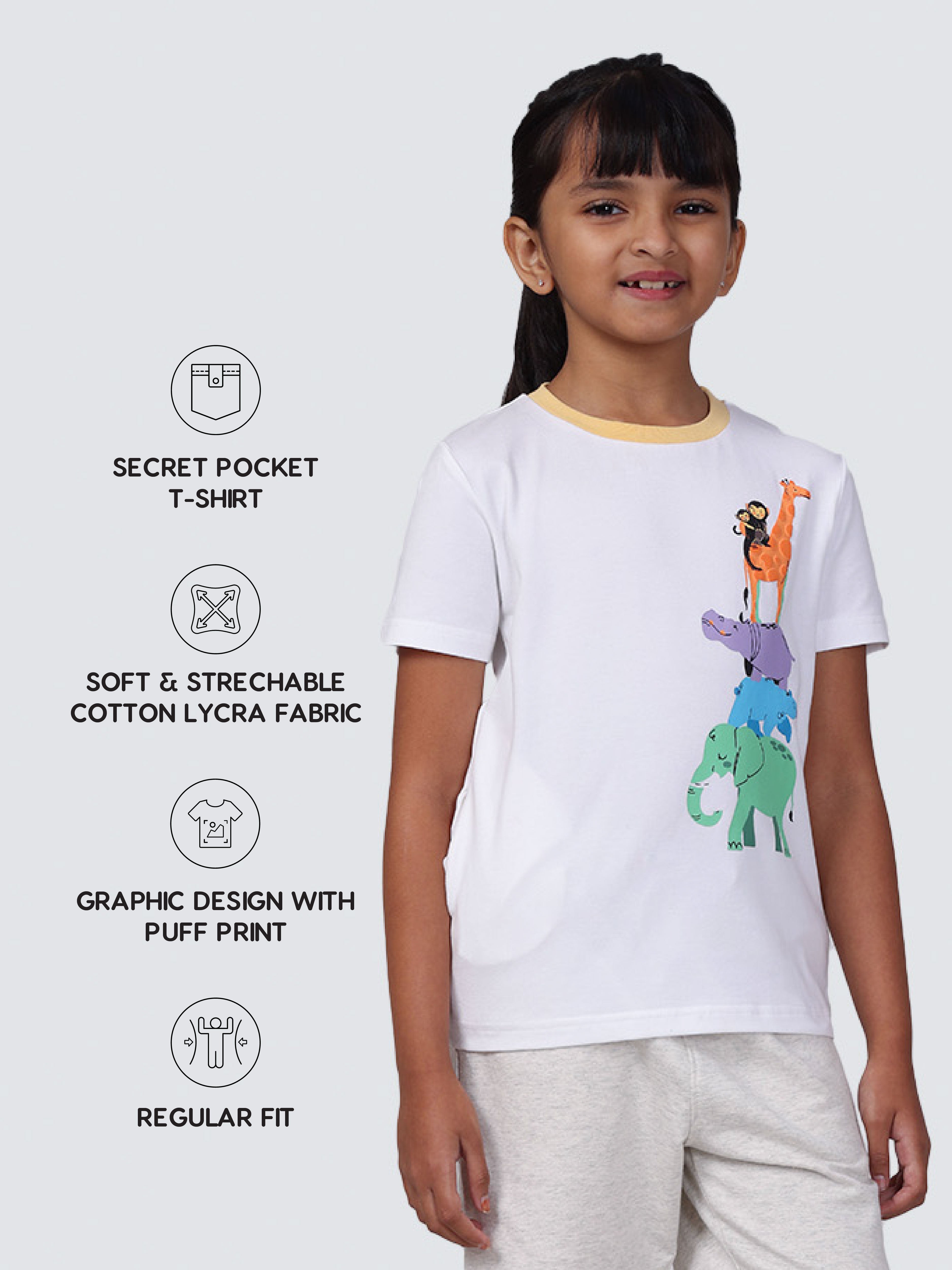 SKU: 057 - Pilolo Animal Buddies Cute Animal Designs Printed Soft & Comfortable Cotton Pocket T-Shirt For Girls