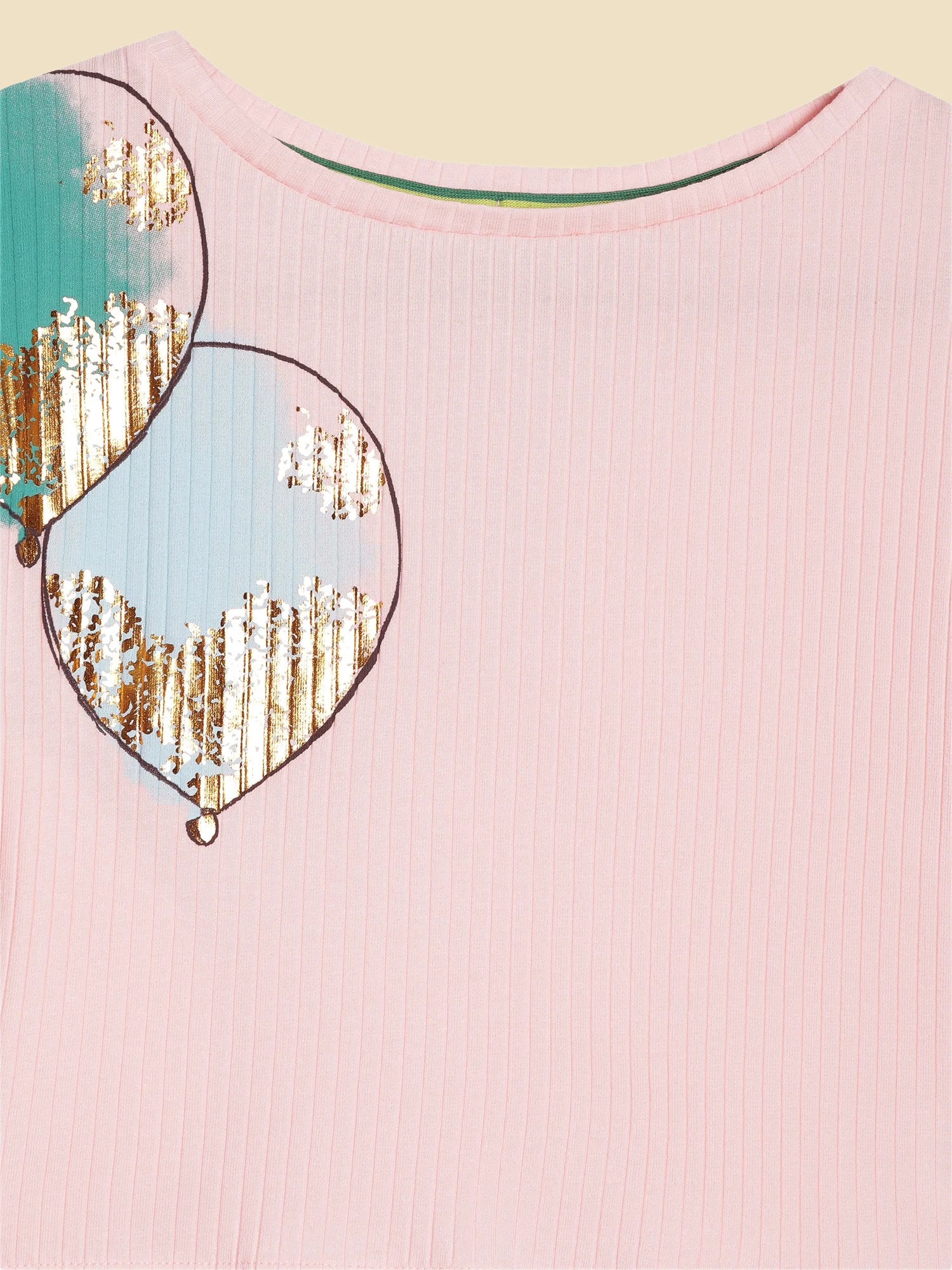 The Pilolo Boxy Striped Tee is designed to bring a burst of vibrancy to your little girl's wardrobe. This pink t-shirt features striking printed balloons and a charming bow detailing on the back, making it both playful and stylish for girls aged 4-9. As with all Pilolo garments, this tee includes our signature pocket, perfect for carrying tiny treasures and keeping them safe. Hidden inside is a surprise gift, making the Boxy Striped Tee even more special and exciting for your child. Crafted from a high-quality blend of 95% cotton and 5% elastane, this tee is soft, stretchy, and incredibly comfortable. The single jersey fabric is gentle on the skin, ensuring your child can move freely and comfortably throughout the day. Whether you're looking for a casual outfit, vacation clothes, or something fun for a day out, the Pilolo Boxy Striped Tee fits the bill. It also makes a perfect gift for birthdays, holidays, or any special occasion. Note: For the right fit, please refer to the size chart as sizes may vary from brand to brand.