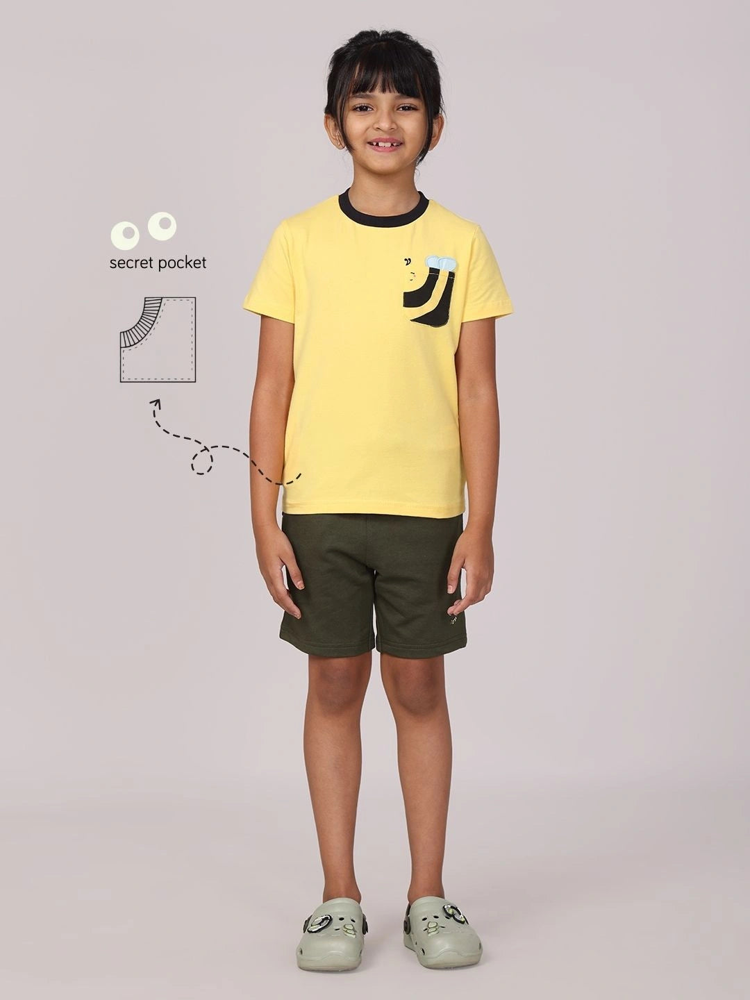 The Busy Bee Tee captures the energy of little explorers, offering a playful design and cozy fabric for non-stop adventures. The featured tee from our collectible tee collection, comes with a contrasting neckband, a bee pocket and back print. Every piece has a pocket that is adorable and practical - as little hands deserve a place to tuck their little adventures. Made to fit kids 2 to 10.