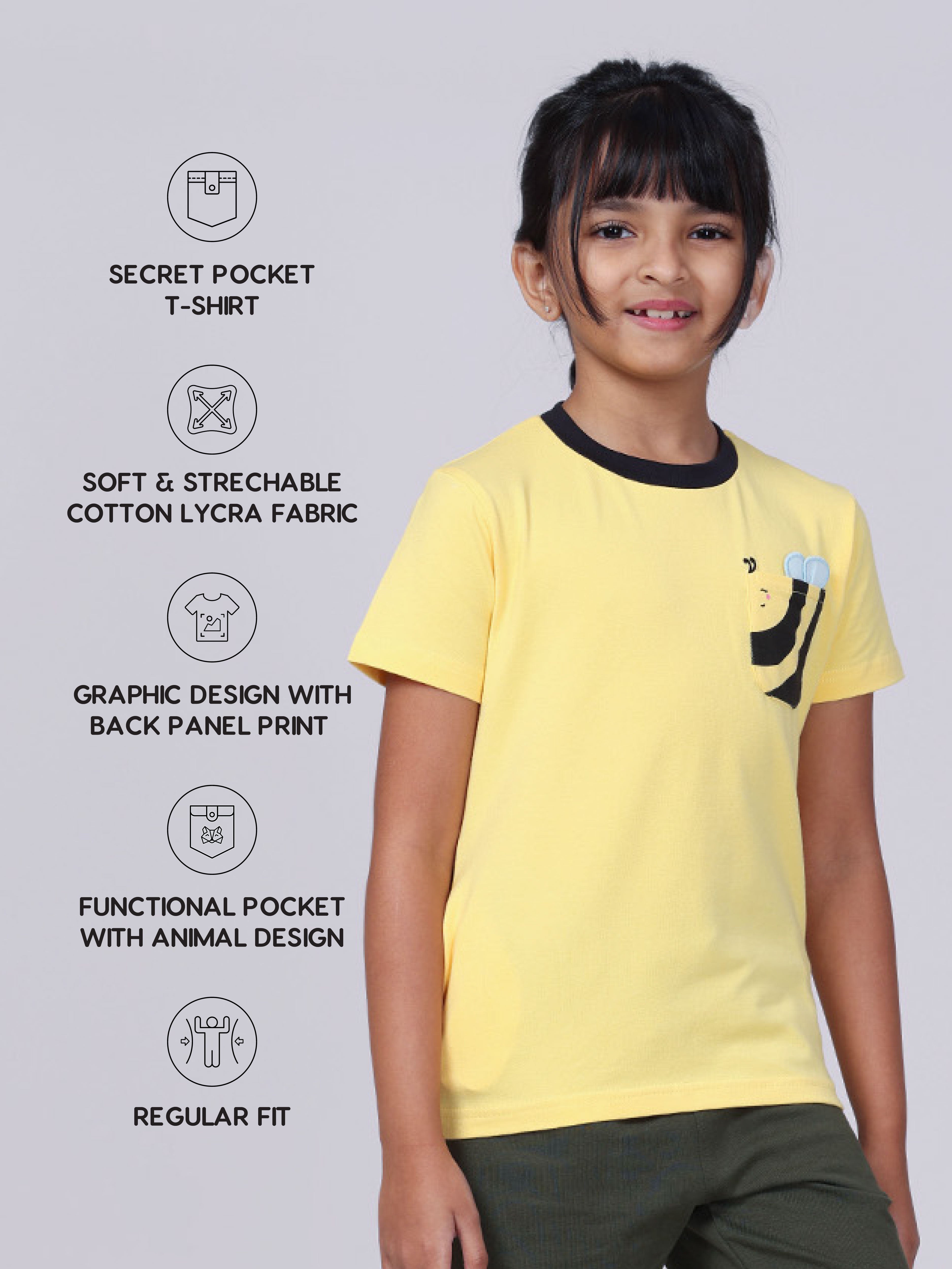 SKU: 065 - Pilolo Busy Bee Cute Animal Designs Back Printed Soft & Comfortable Cotton Pocket T-Shirt For Girls