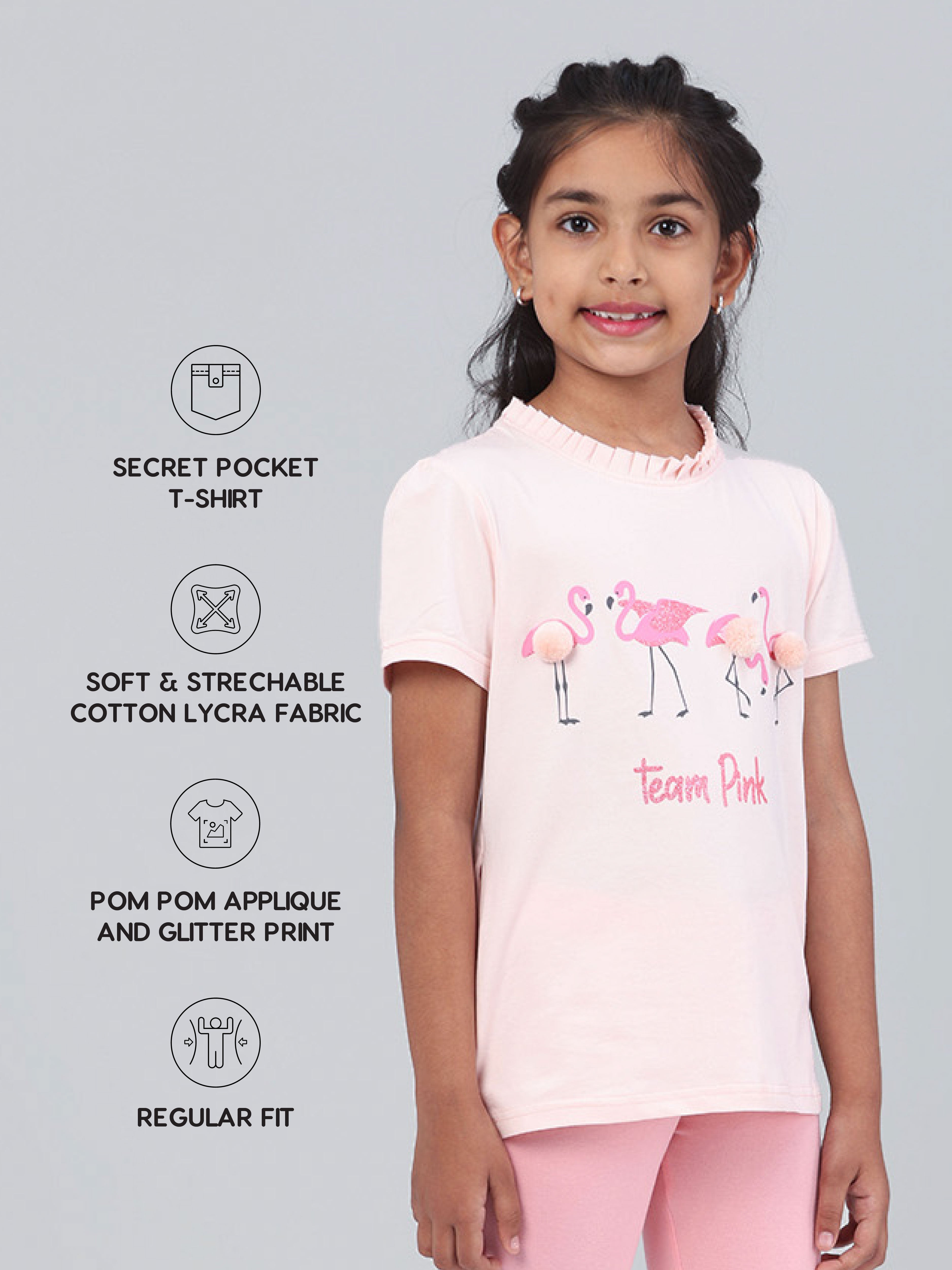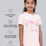 SKU: 055 - Pilolo Flamingo Squad Cute Animal Designs, Printed, Soft & Comfortable Cotton Pocket T-Shirt For Girls