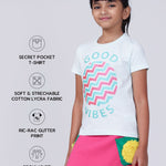 The Pilolo Good Vibes Tee is a cheerful and vibrant addition to your little girl's wardrobe. This green t-shirt is adorned with colorful ric-rac lace, adding a playful and lively touch that’s perfect for girls aged 4-9. The design is simple yet eye-catching, making it a versatile piece for any occasion. As with all Pilolo garments, this t-shirt includes our signature pocket, perfect for carrying tiny treasures and keeping them safe. Hidden inside is a surprise gift, making the Good Vibes Tee even more special and exciting for your child. Crafted from a premium fabric blend of 95% cotton and 5% elastane, this t-shirt is soft, stretchy, and incredibly comfortable. The fabric is gentle on the skin, ensuring your child can move freely and comfortably throughout the day. Whether you're looking for a fun outfit for a day out, something special for playtime, or a unique gift, the Pilolo Good Vibes Tee fits the bill. It also makes a perfect gift for birthdays, holidays, or any special occasion. Note: For the right fit, please refer to the size chart as sizes may vary from brand to brand.