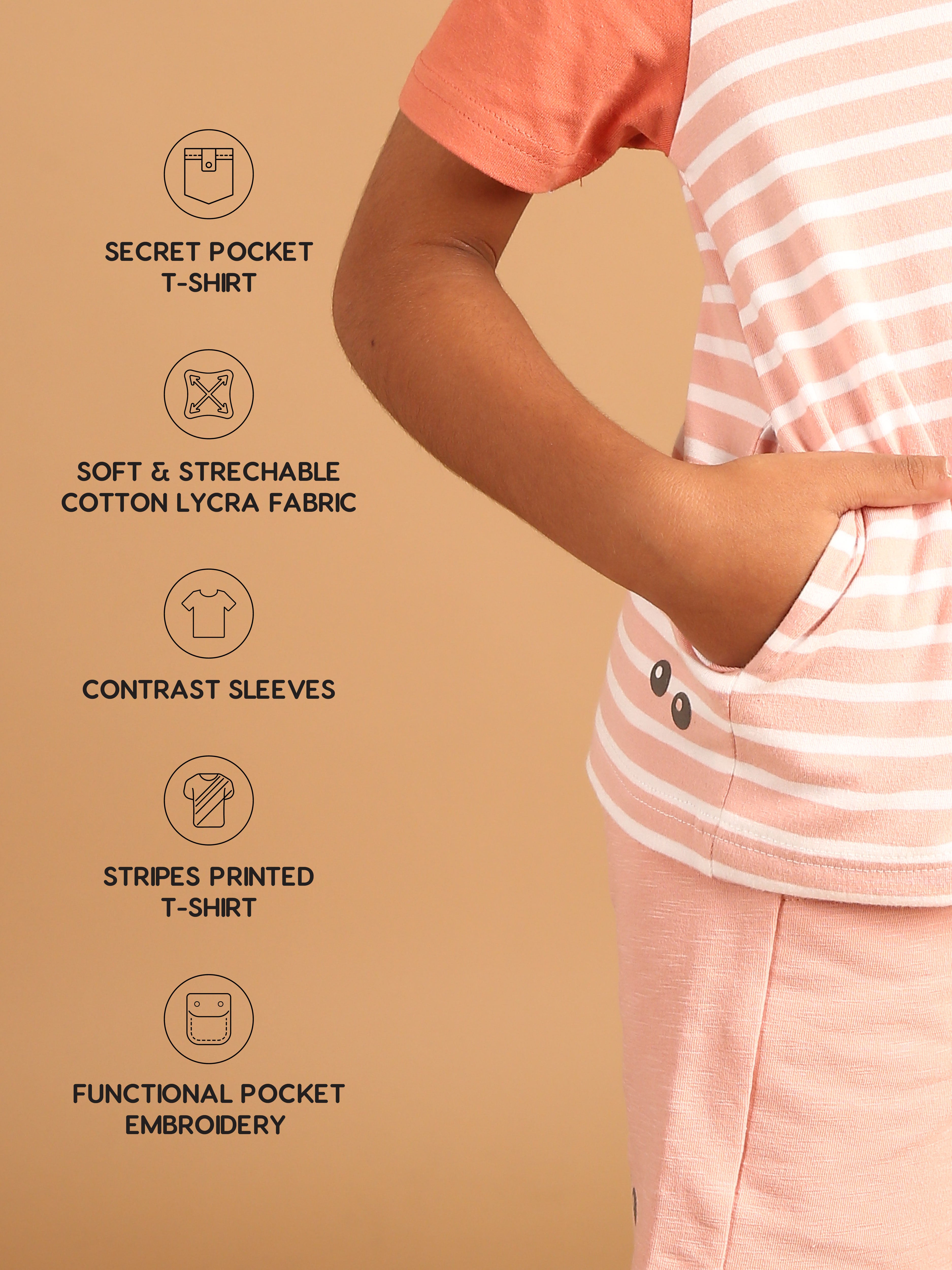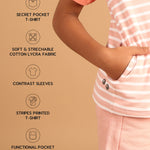 SKU: 083A - Pilolo My Heart Pink Stripped Cotton Pocket T-Shirt For Girls