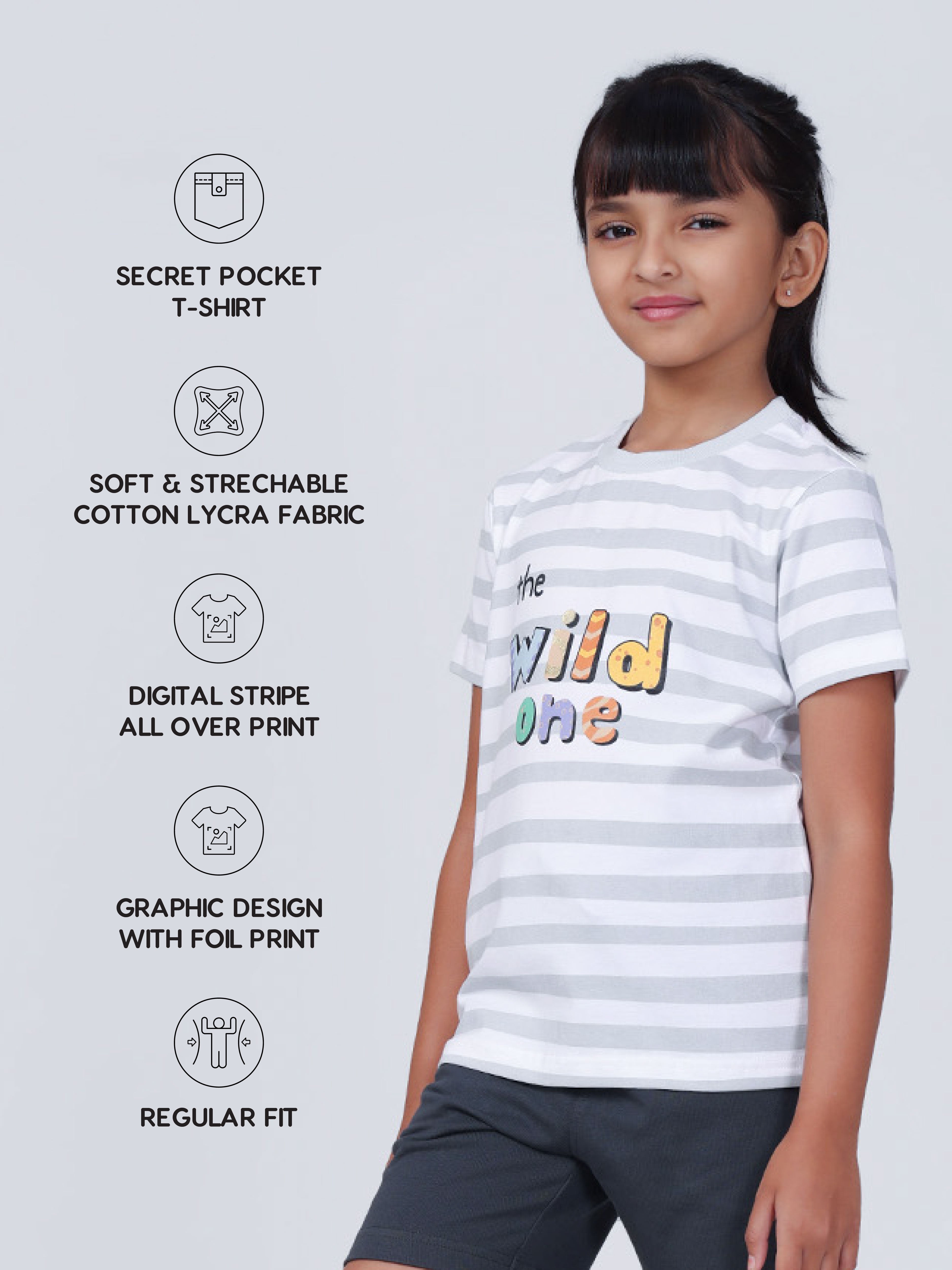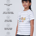 SKU: 059 - Pilolo Wild One Cute Animal Designs Printed Stripped Soft & Comfortable Cotton Pocket T-Shirt For Girls