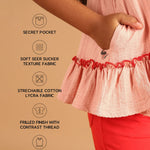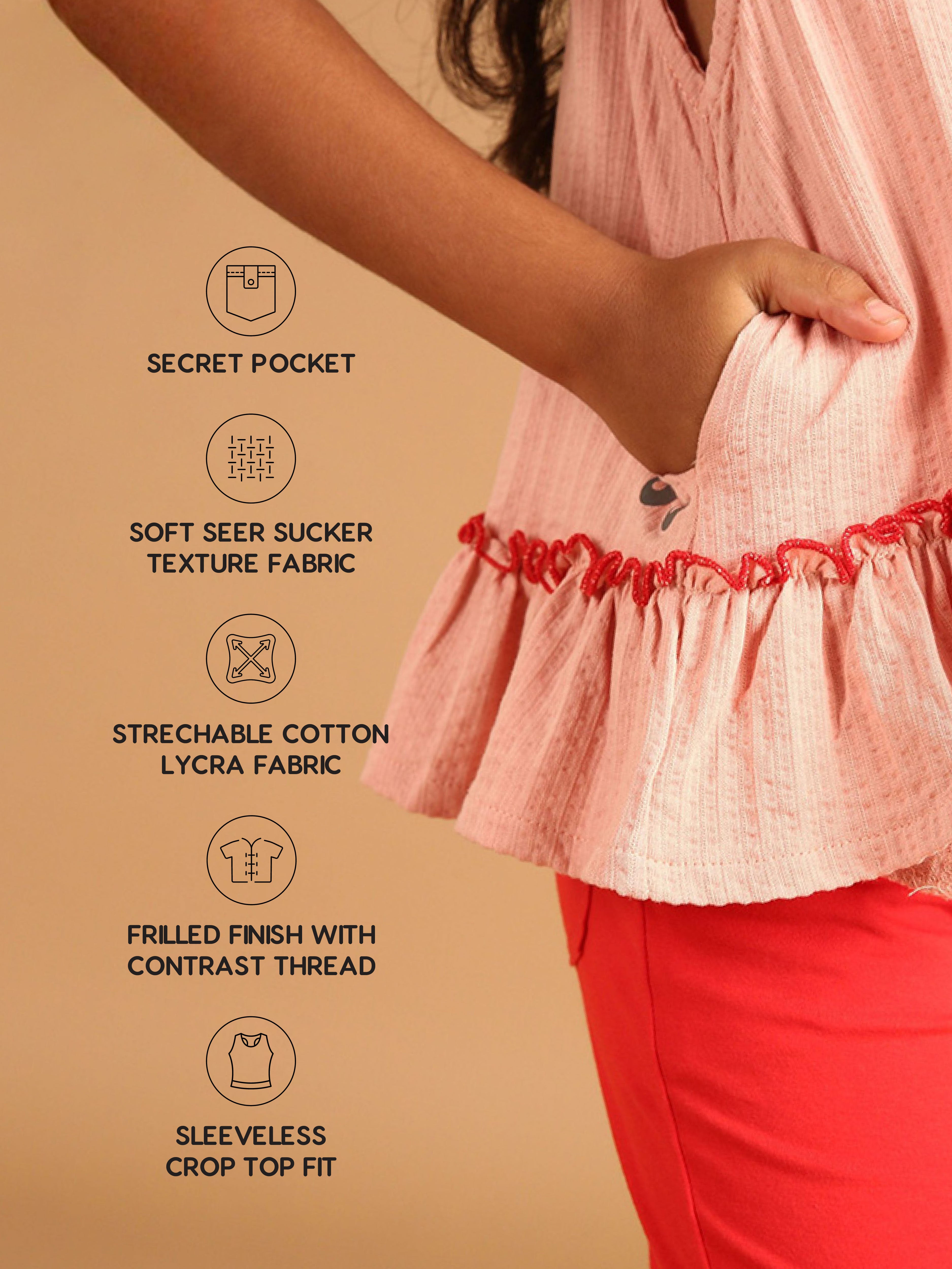 SKU: 093A - Pilolo Pink Ruffle Sleeveless Cotton Pocket Crop Top For Girls