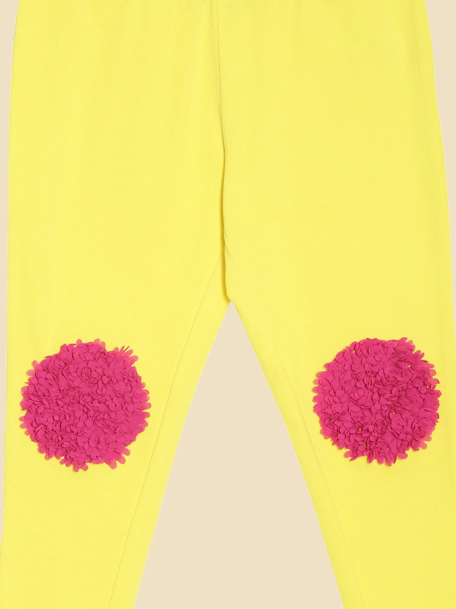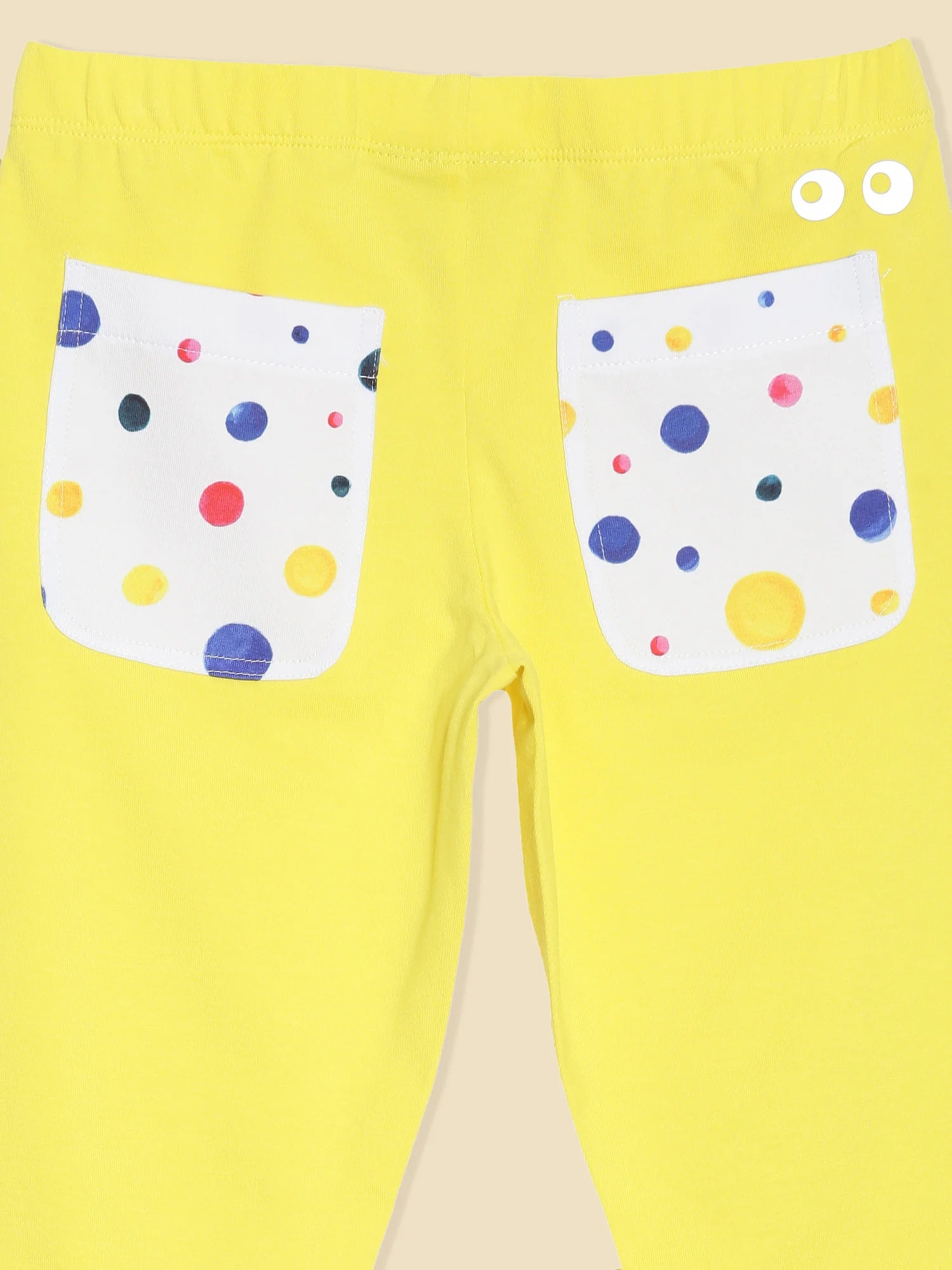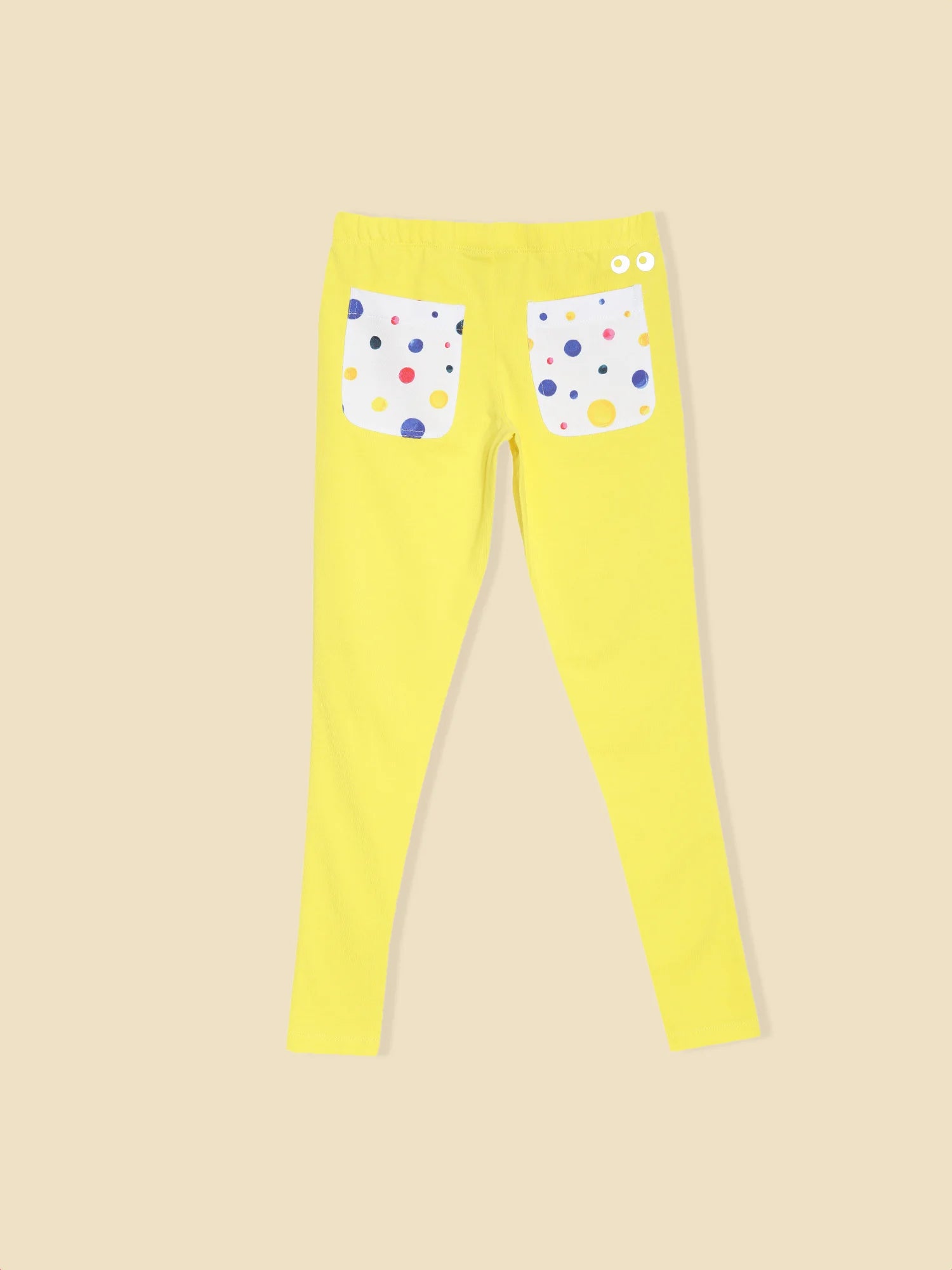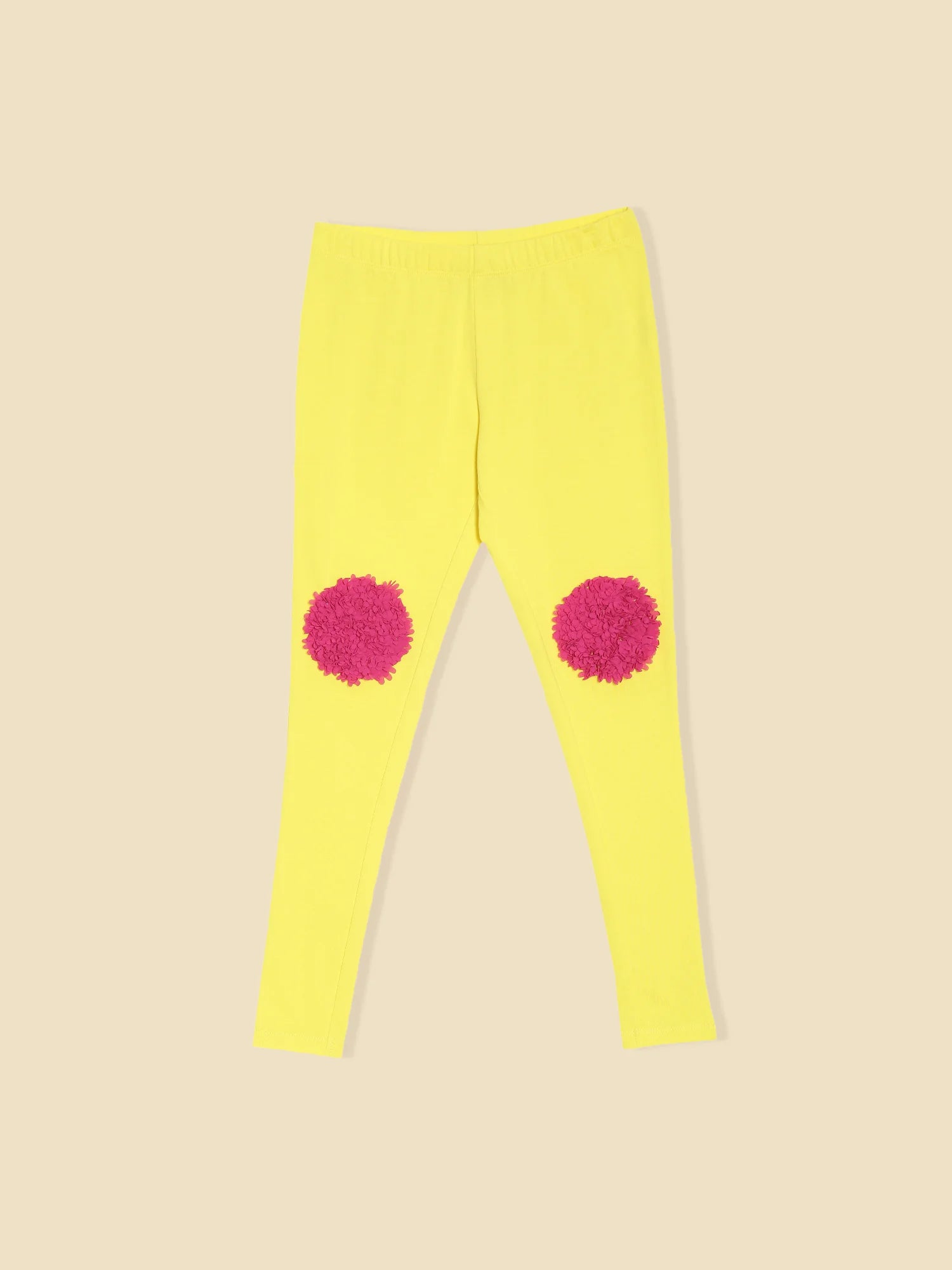 The Pilolo Flower Power Leggings are a fun and vibrant addition to your little girl's wardrobe. These bright yellow leggings are designed to stand out, featuring exaggerated pompoms on the kneepads and polka-dotted back pockets that add a playful contrast of colors. Perfect for girls aged 4-9, these leggings bring both style and comfort to any outfit. As with all Pilolo garments, these leggings include our signature pocket, perfect for carrying tiny treasures and keeping them safe. Hidden inside is a surprise gift, making the Flower Power Leggings even more special and exciting for your child. Crafted from a premium fabric blend of 95% cotton and 5% elastane, these leggings are soft, stretchy, and incredibly comfortable. The fabric is gentle on the skin, ensuring your child can move freely and comfortably throughout the day. Whether you're looking for a fun outfit for a day out, something special for playtime, or a unique gift, the Pilolo Flower Power Leggings fit the bill. They also make a perfect gift for birthdays, holidays, or any special occasion. Note: For the right fit, please refer to the size chart as sizes may vary from brand to brand.