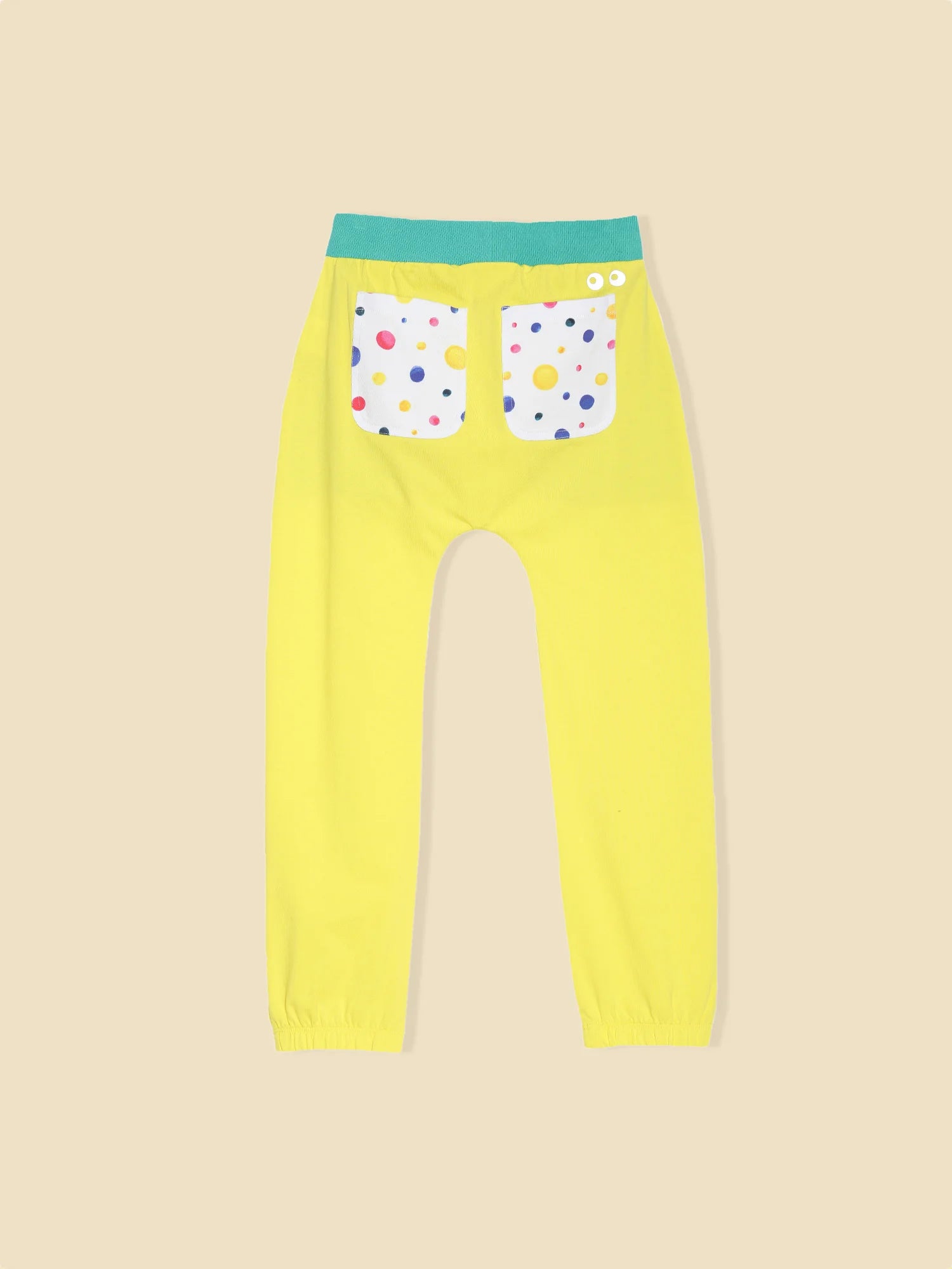 The Pilolo Hip Hop Joggers are the perfect blend of style and comfort for your child’s wardrobe. These yellow joggers feature a low-drop crotch, giving them a trendy look while ensuring a comfortable fit. The polka-dotted pockets at the back add a playful touch, making these joggers both fashionable and functional. Designed as a unisex option for kids aged 4-9, they are perfect for any casual occasion. As with all Pilolo garments, these joggers include our signature pocket, perfect for carrying tiny treasures and keeping them safe. Hidden inside is a surprise gift, making the Hip Hop Joggers even more special and exciting for your child. Crafted from a premium fabric blend of 95% cotton and 5% elastane, these joggers are soft, stretchy, and incredibly comfortable. The fabric is gentle on the skin, ensuring your child can move freely and comfortably throughout the day. Whether you're looking for a stylish playtime outfit, something cozy for lounging, or a unique gift, the Pilolo Hip Hop Joggers fit the bill. They also make a perfect gift for birthdays, holidays, or any special occasion. Note: For the right fit, please refer to the size chart as sizes may vary from brand to brand.