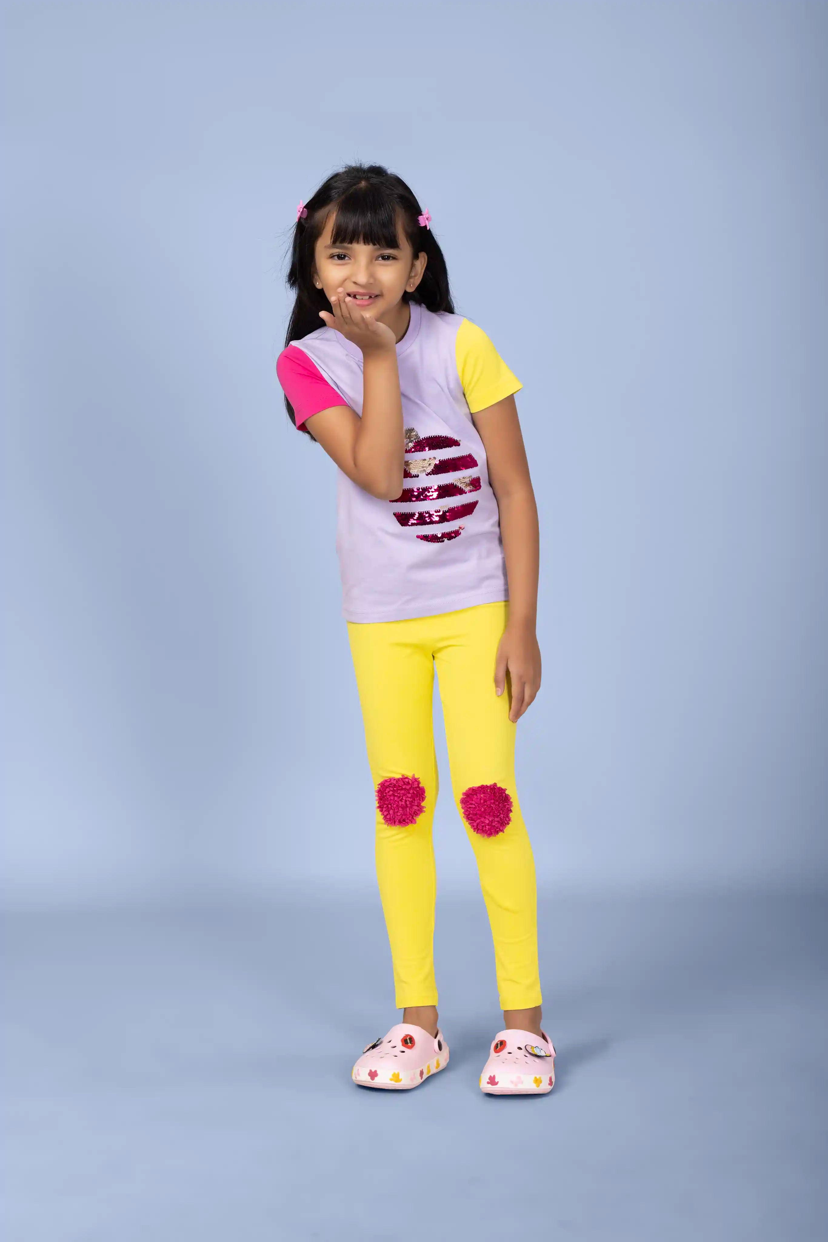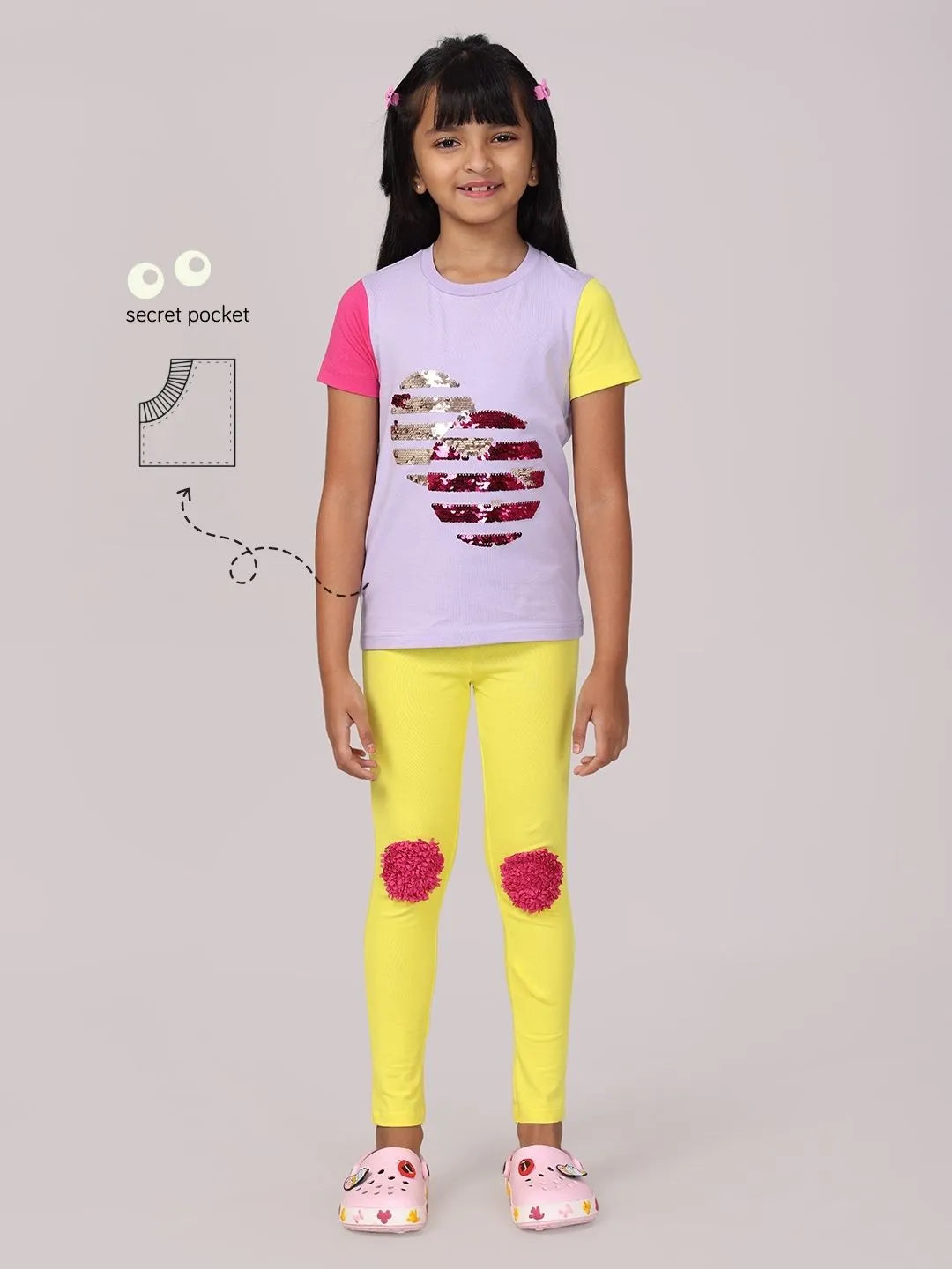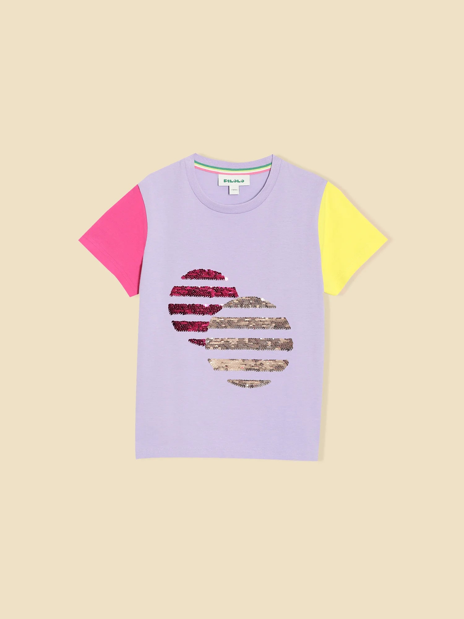 The Pilolo This or That Tee is a fun and interactive addition to your little girl's wardrobe. This yellow t-shirt is embellished with exaggerated two-toned sequined polka dots that change colors when swiped, adding an element of playfulness and creativity to her outfit. Designed for girls aged 4-9, this t-shirt is perfect for those who love to express themselves with a touch of sparkle. As with all Pilolo garments, this t-shirt includes our signature pocket, perfect for carrying tiny treasures and keeping them safe. Hidden inside is a surprise gift, making the This or That Tee even more special and exciting for your child. Crafted from a premium fabric blend of 95% cotton and 5% elastane, this t-shirt is soft, stretchy, and incredibly comfortable. The fabric is gentle on the skin, ensuring your child can move freely and comfortably throughout the day. Whether you're looking for an outfit that stands out, something fun for playtime, or a unique gift, the Pilolo This or That Tee fits the bill. It also makes a perfect gift for birthdays, holidays, or any special occasion. Note: For the right fit, please refer to the size chart as sizes may vary from brand to brand.