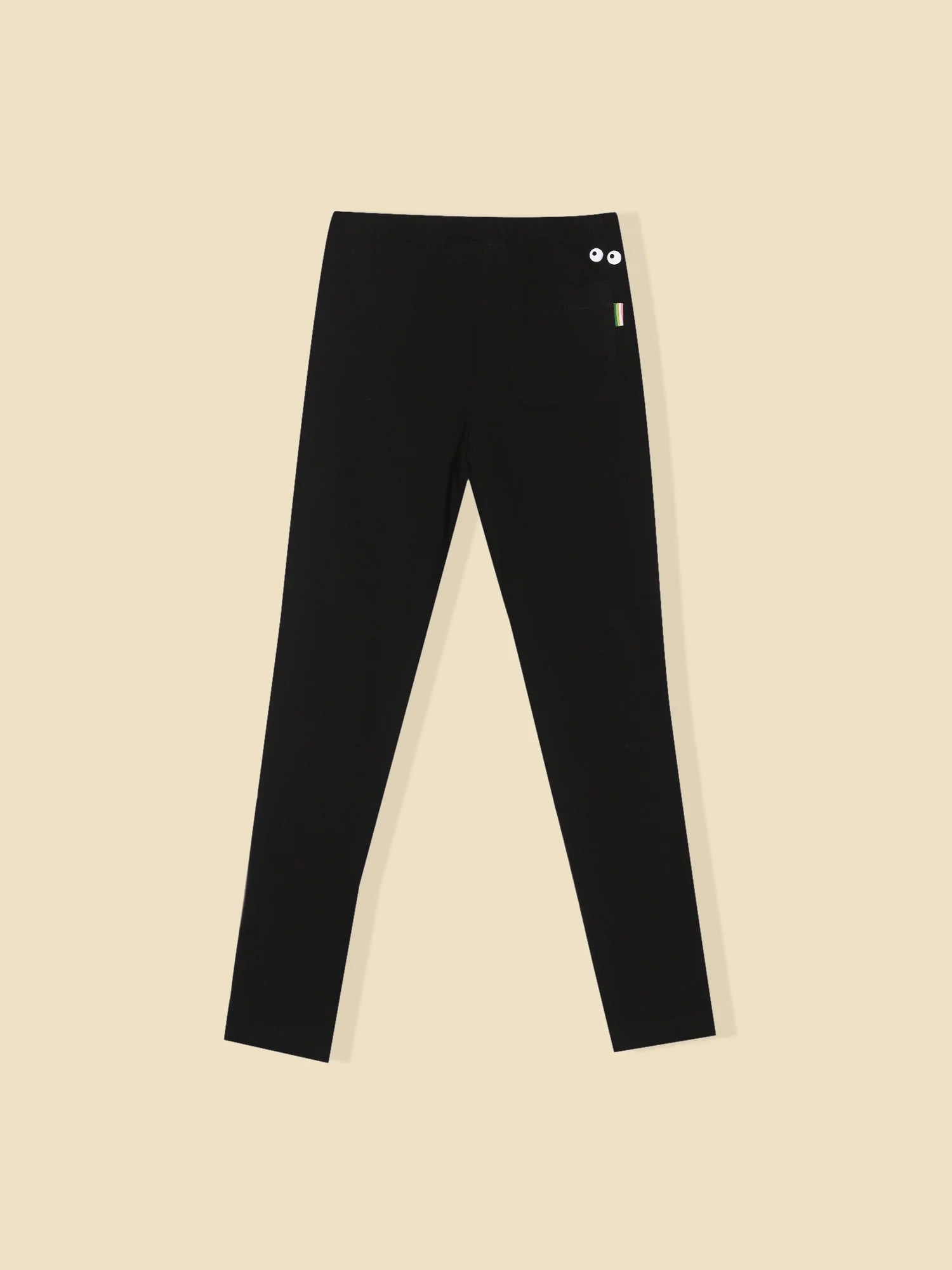 Host a play date or play dress up in the Trendy Black Leggings. The leggings are stretchy,soft and breathable offering all-day comfort and a snug fit that moves with your child. with playful designs, beautifl embroidery and a functional back pocket, these leggings are trendy and functional for kids from 2 to 10. Fit: Regular Fabric: 95% cotton, 5% elastane, Single Jersey Care Instruction:Tumble dry in cold water with like colors;keep it fresh, do not bleach. Color: Black