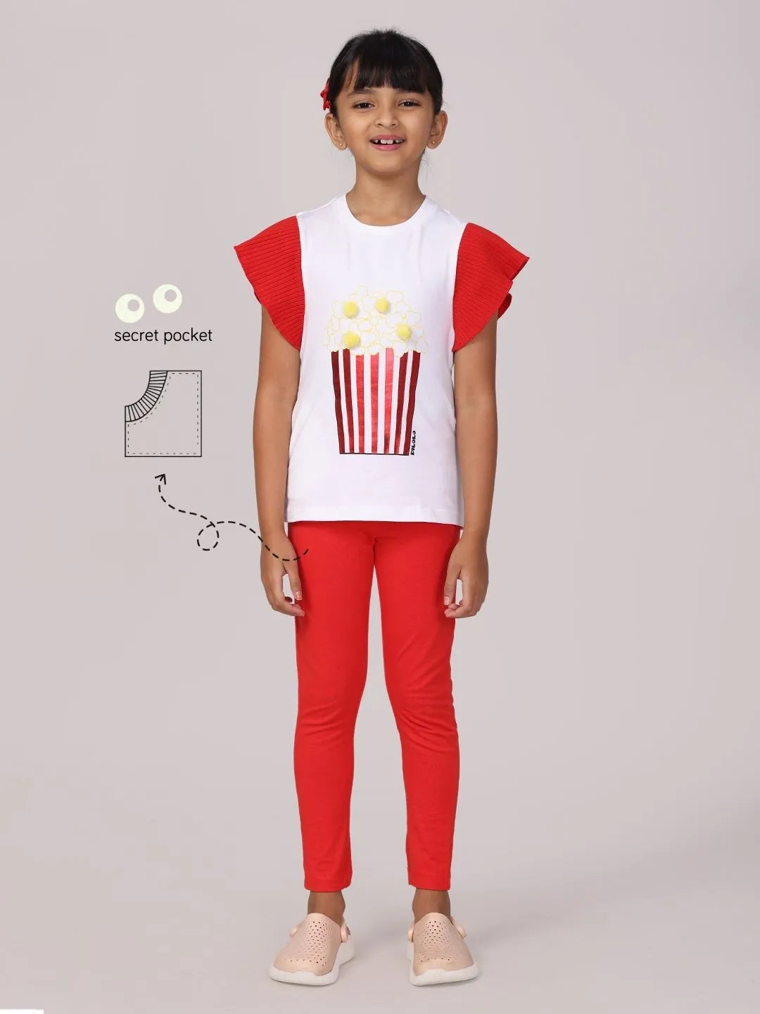SKU: 052B-Trendy Red Leggings-Girls-Red-4-5 Yr
