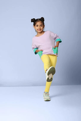 Walk through a field of sunflowers and lie down under the stars in your backyard in the Trendy Yellow Leggings. The leggings are stretchy,soft and breathable offering all-day comfort and a snug fit that moves with your child. with playful designs, beautifl embroidery and a functional back pocket, these leggings are trendy and functional for kids from 2 to 10. Fit: Regular Fabric: 95% cotton, 5% elastane, Single Jersey Care Instruction:Tumble dry in cold water with like colors;keep it fresh, do not bleach. Color: Yellow