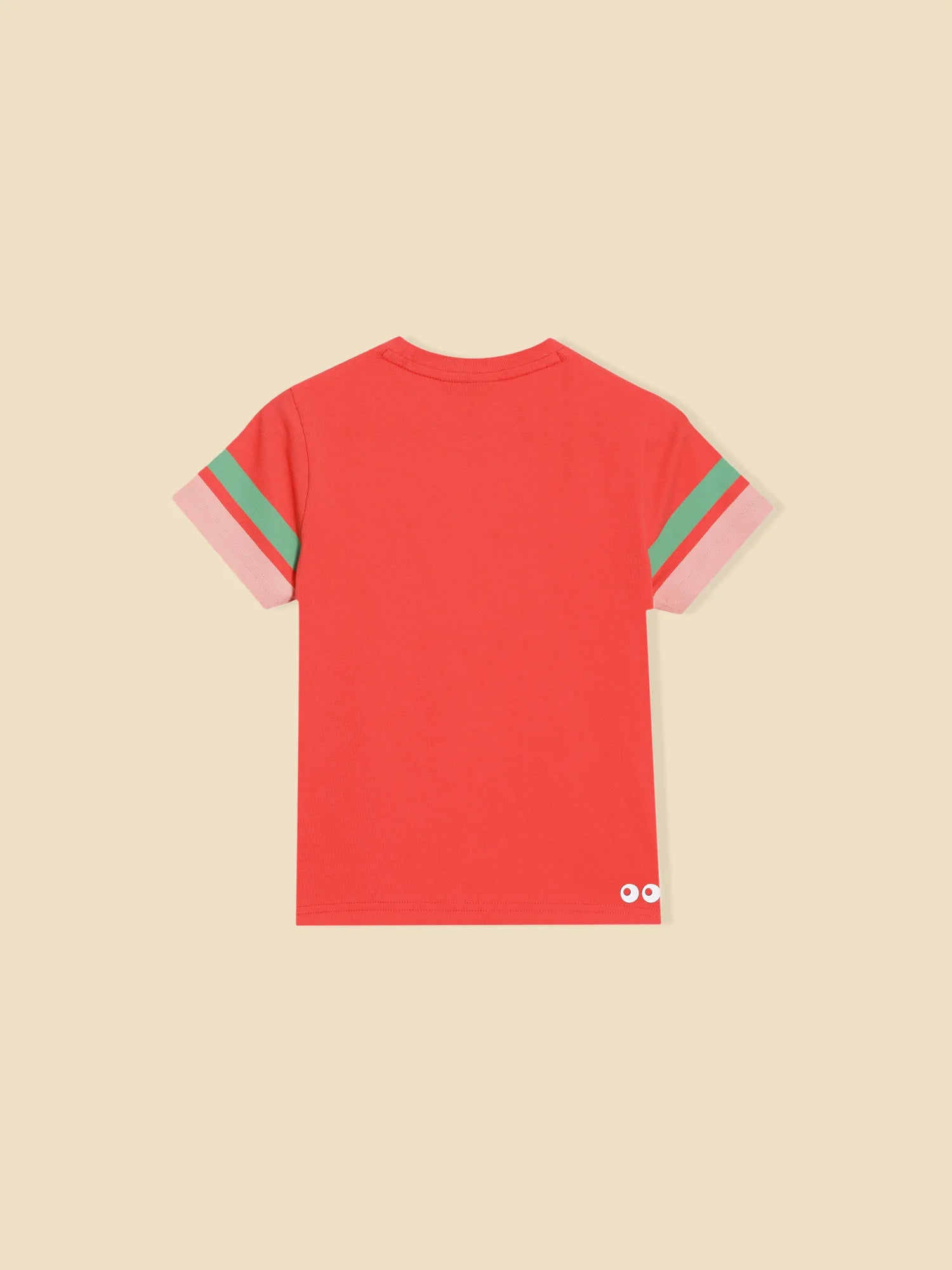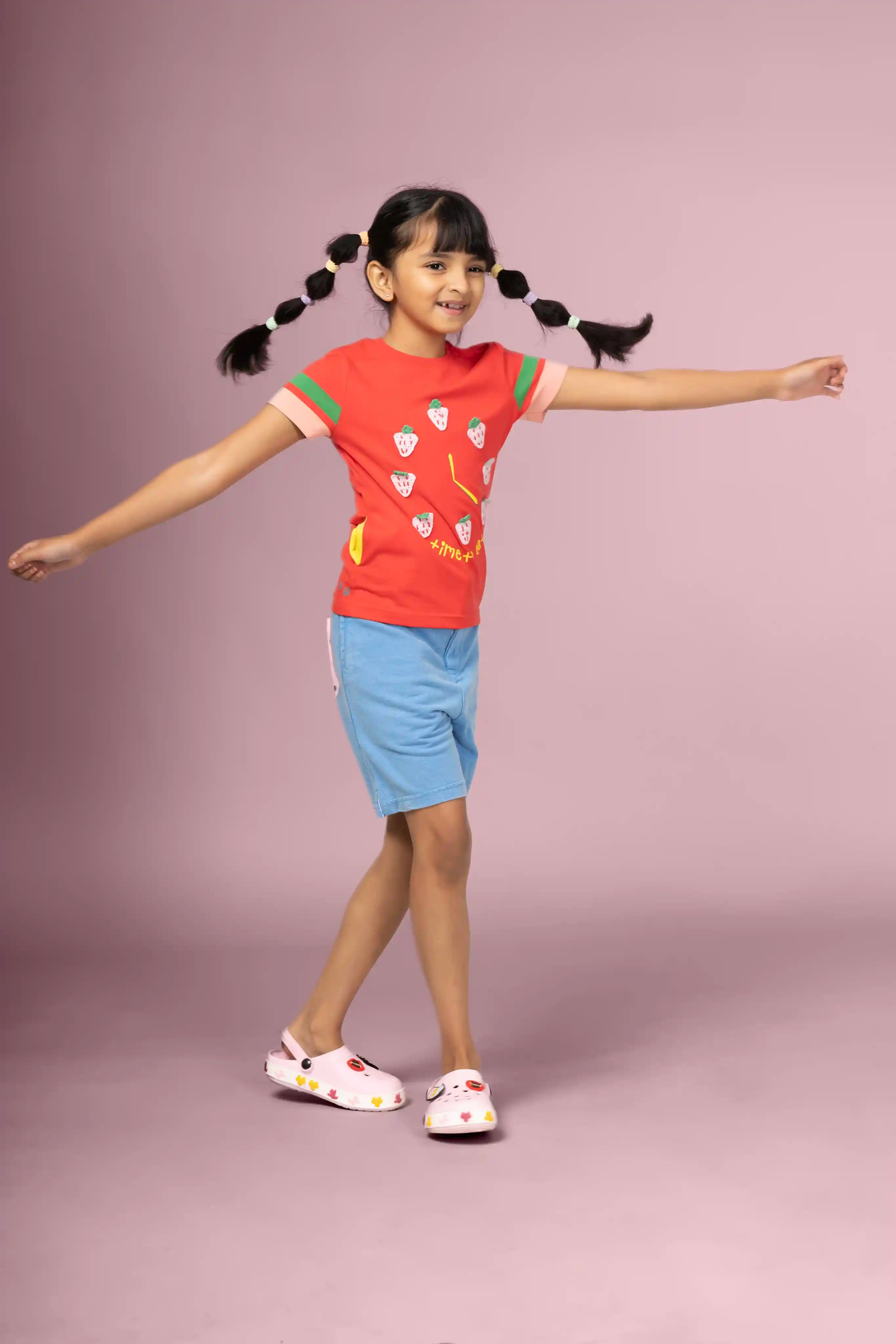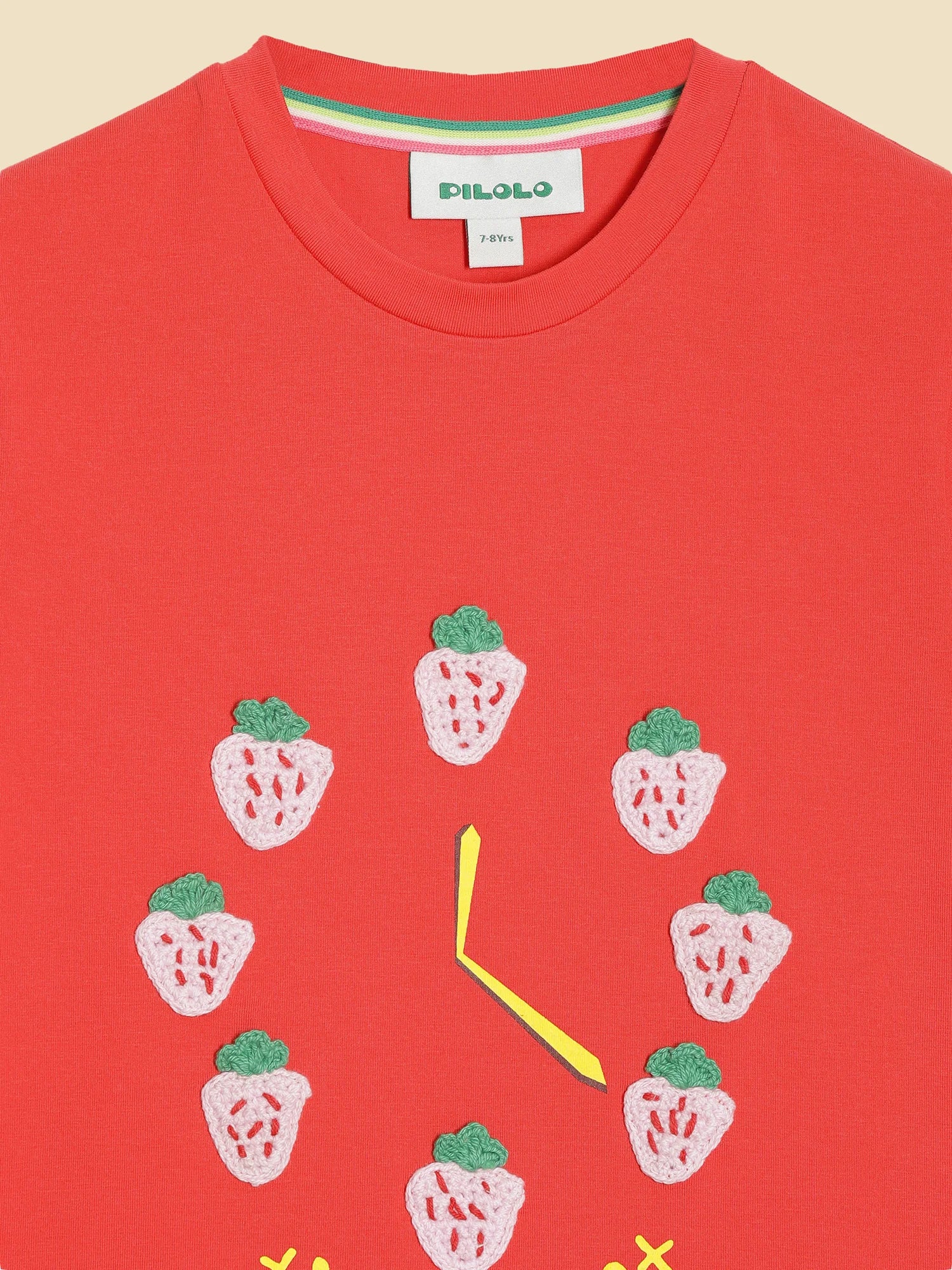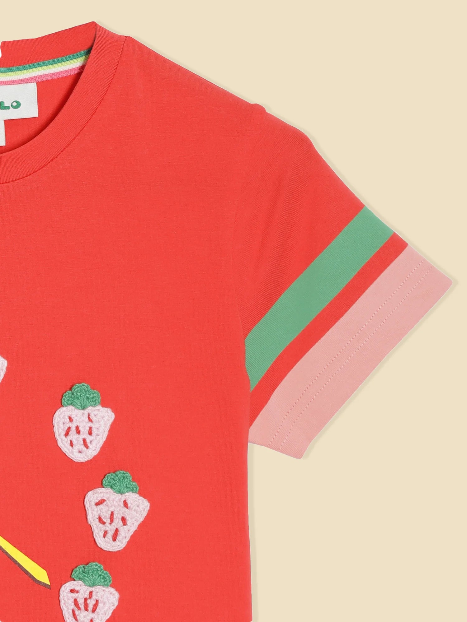 The Pilolo Very Berry Tee is a sweet and playful addition to your little girl's wardrobe. This soft cotton red t-shirt features a charming strawberry applique, adding a fun and fruity touch that's perfect for girls aged 4-9. The design is simple yet adorable, making it a versatile piece for any occasion. As with all Pilolo garments, this t-shirt includes our signature pocket, perfect for carrying tiny treasures and keeping them safe. Hidden inside is a surprise gift, making the Very Berry Tee even more special and exciting for your child. Crafted from a premium fabric blend of 95% cotton and 5% elastane, this t-shirt is soft, breathable, and incredibly comfortable. The fabric is gentle on the skin, ensuring your child can move freely and comfortably throughout the day. Whether you're looking for a fun outfit for a day out, something special for playtime, or a unique gift, the Pilolo Very Berry Tee fits the bill. It also makes a perfect gift for birthdays, holidays, or any special occasion. Note: For the right fit, please refer to the size chart as sizes may vary from brand to brand.