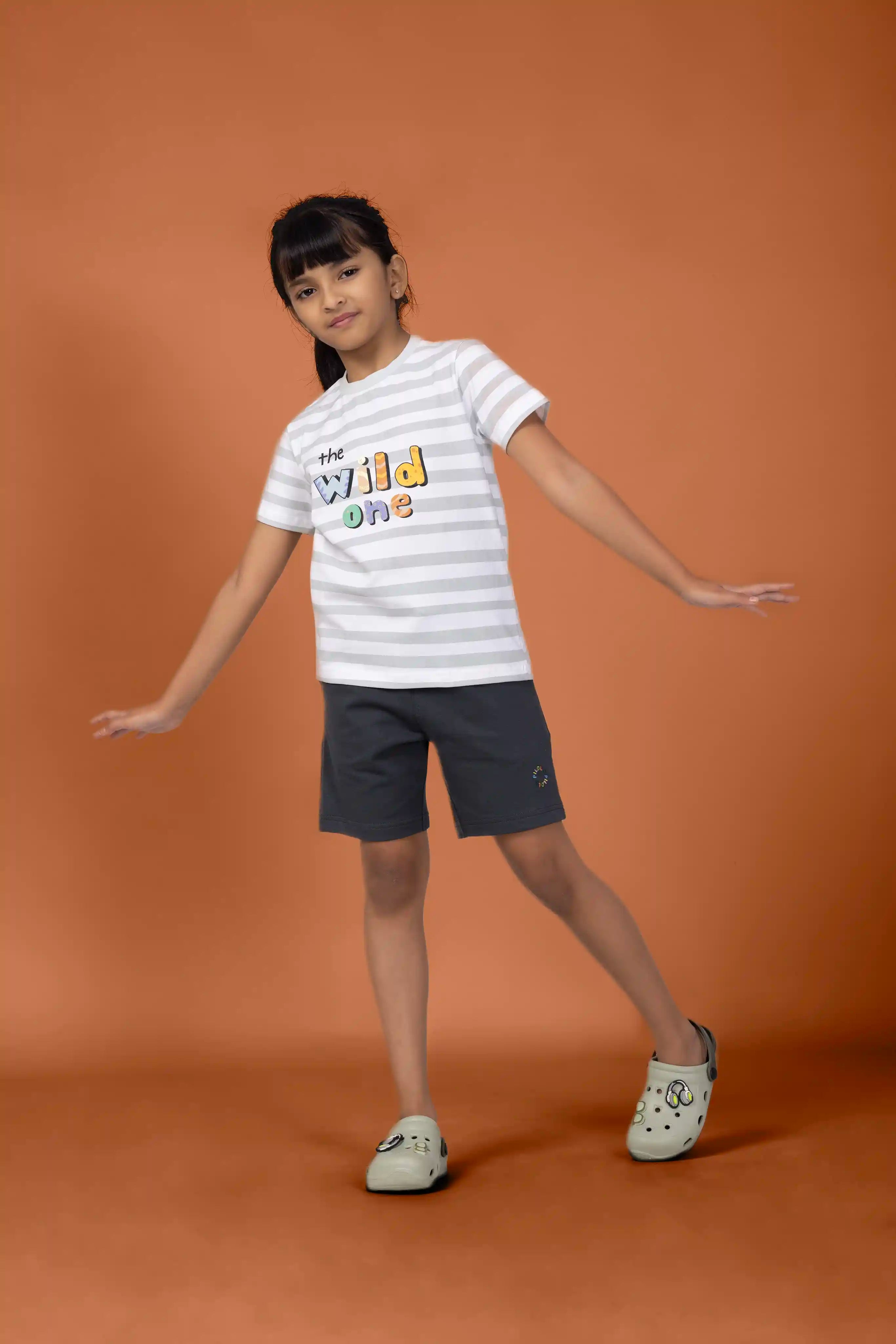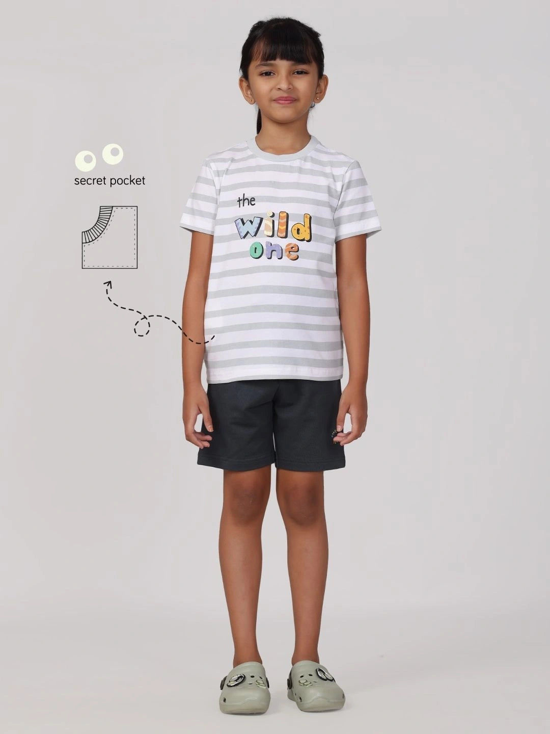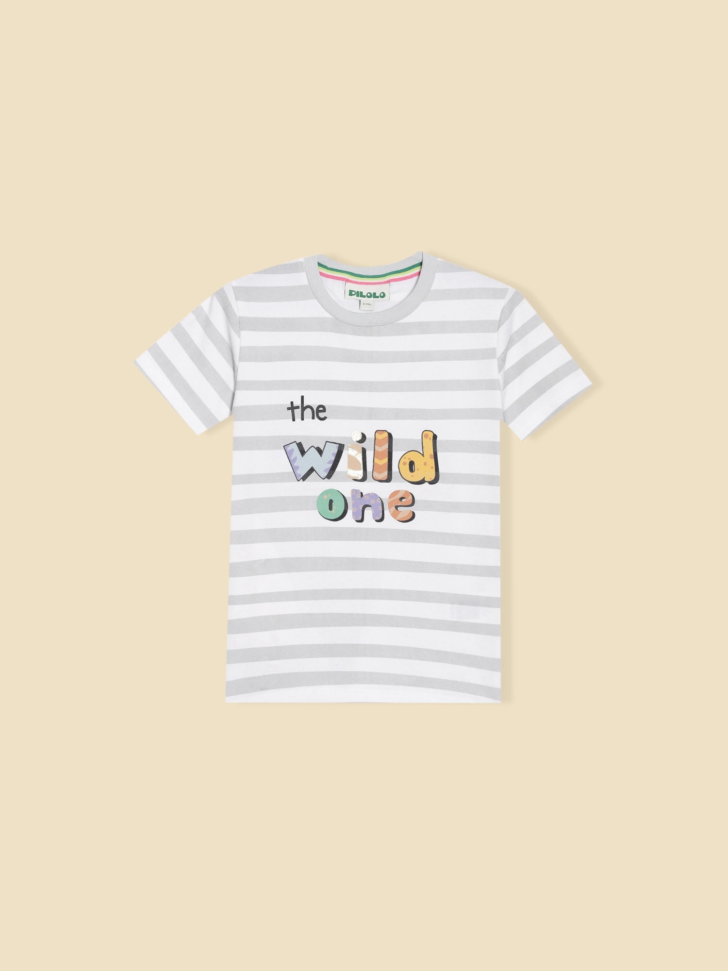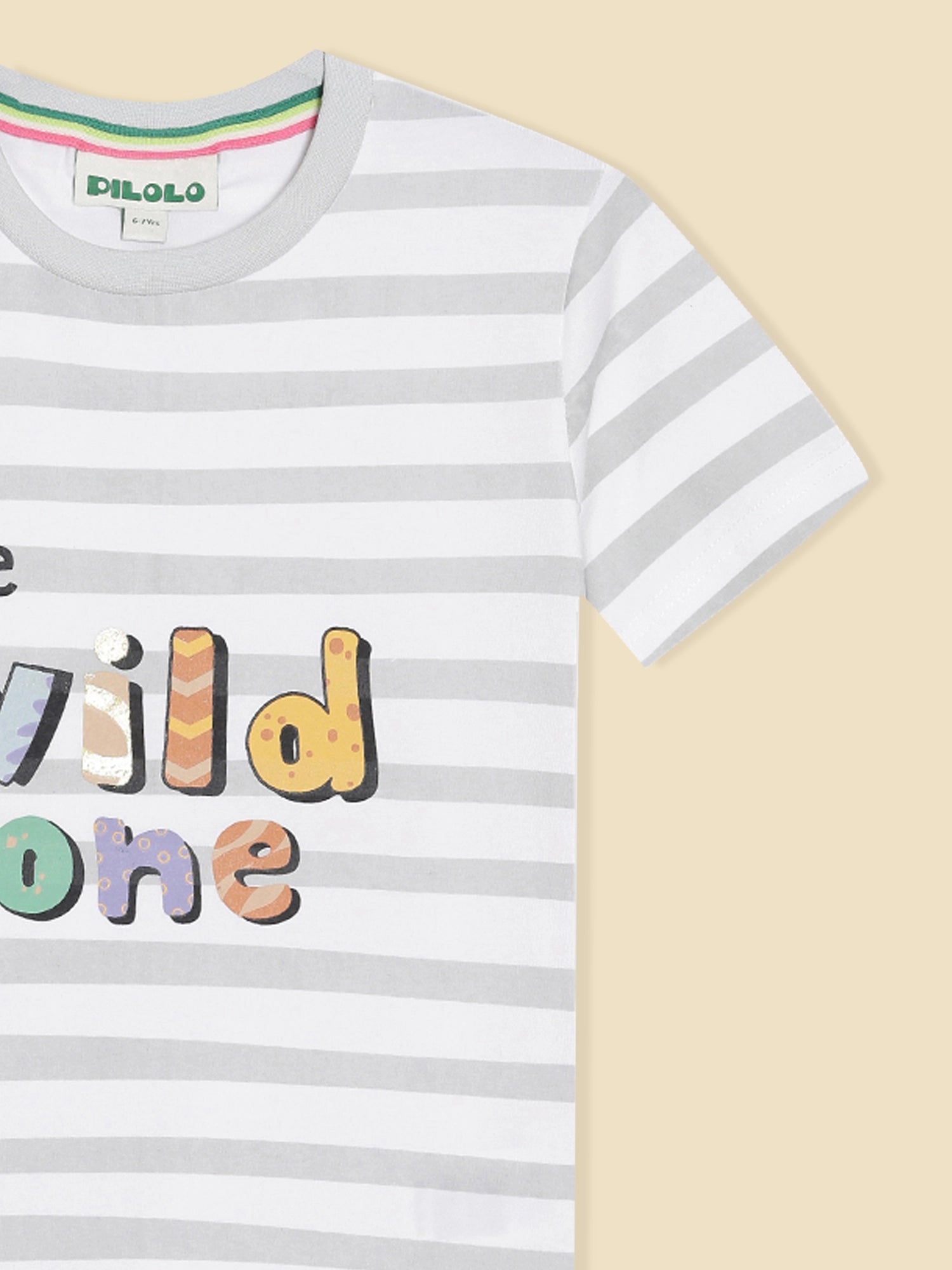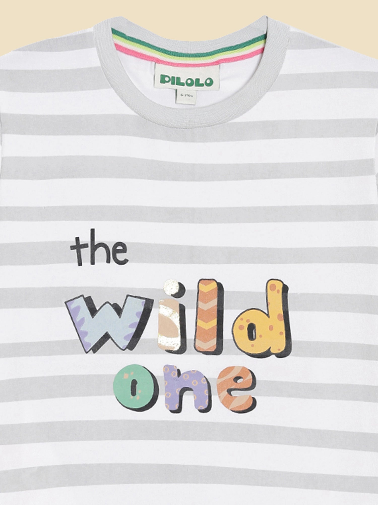 With its soft, airy fabric, the Wild One Tee offers comfort and breathability for all-day wear. It features handpainted stripes with colorful text in puff and foil print. Every piece has a pocket that is adorable and practical - as little hands deserve a place to tuck their little adventures. Made to fit kids 2 to 10.