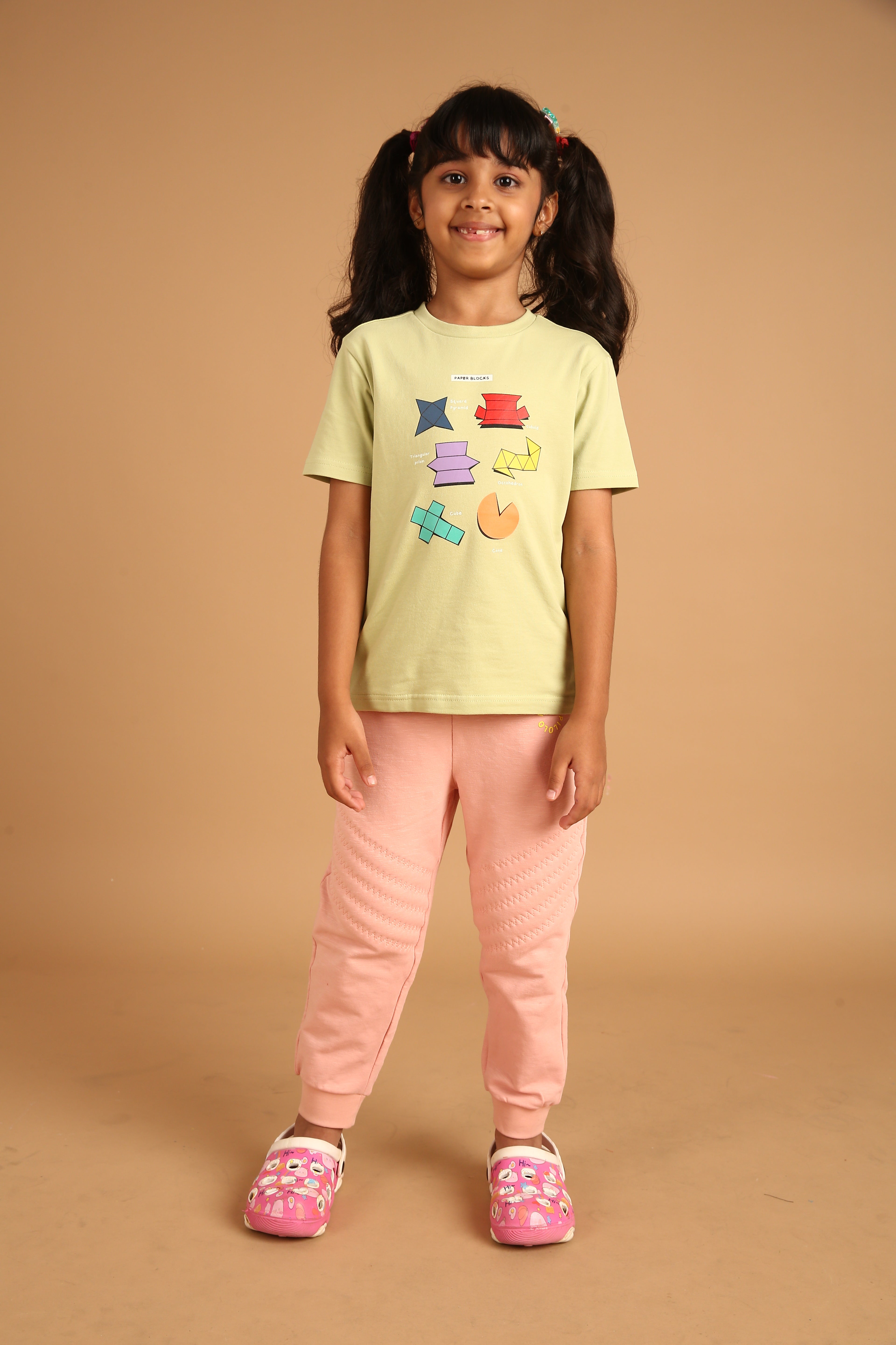 SKU: 111B - Pilolo Building Block 3D Cuboid Pistachio Cotton Pocket T-Shirt For Boys